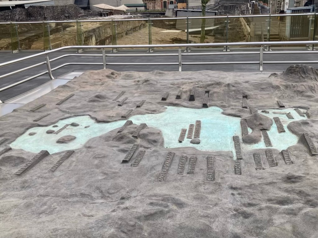 Zurück auf dem Zócalo zieht es uns in die Vergangenheit. Die Azteken haben hier auf einer Insel im längst trockengelegten Texcoco-See ihre Hauptstadt Tenochtitlan errichtet. Sie war 1519 mit rund 300.000 Einwohnern eine der größten Städte der Welt. Der Markt, einer der größten Handelsplätze Amerikas, wurde täglich von tausenden Menschen besucht. Die Spanier zerstörten die Stadt vollständig und errichteten an dem Platz ihre México-Stadt.