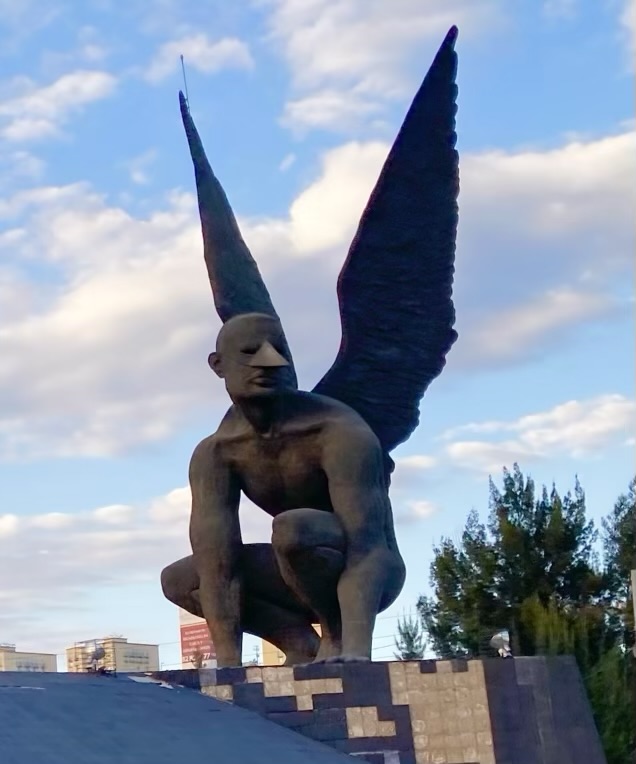 Uns beschleicht der Hunger! Nun soll es hier in CDMX einen besonderen Taco geben, den „Taco al Pastor“. Auf dem Weg zur empfohlenen Taquería kommen wir noch an einem Denkmal vorbei, das wir hier nicht erwartet hätten. CDMX überrascht uns 😳.