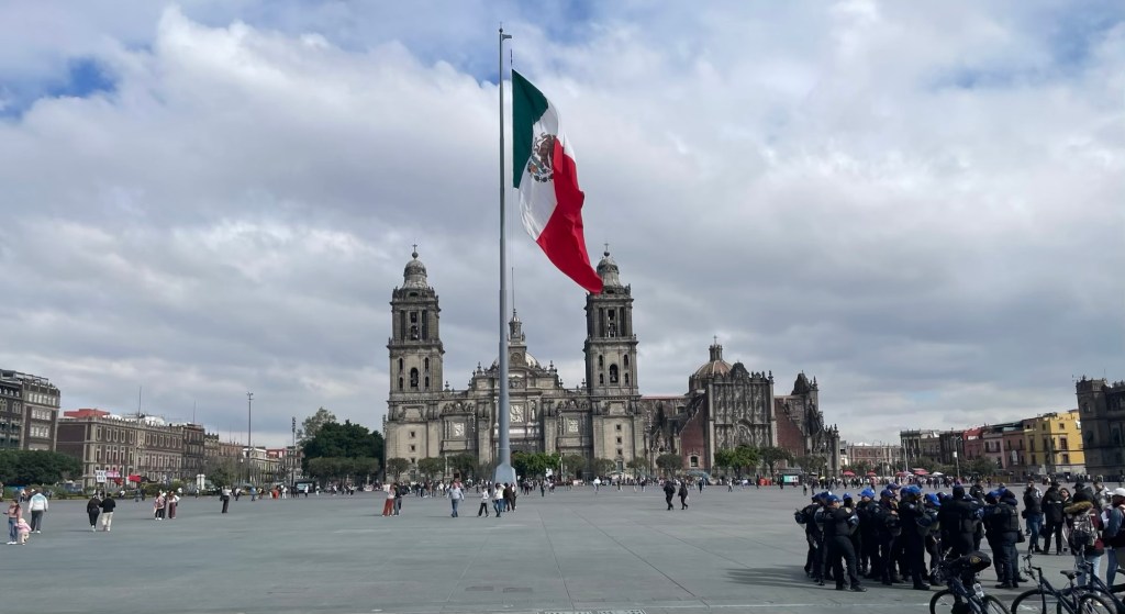 In CDMX angekommen enttäuscht uns erstmal der riesige kahle Platz mit einfallslosen Betonplatten, sehr viel Polizeipräsenz und der riesigen Flagge in der Mitte. Die Kathedrale, angeblich die größte in ganz Nordamerika, wirkt bei der Weite irgendwie klein und unscheinbar.