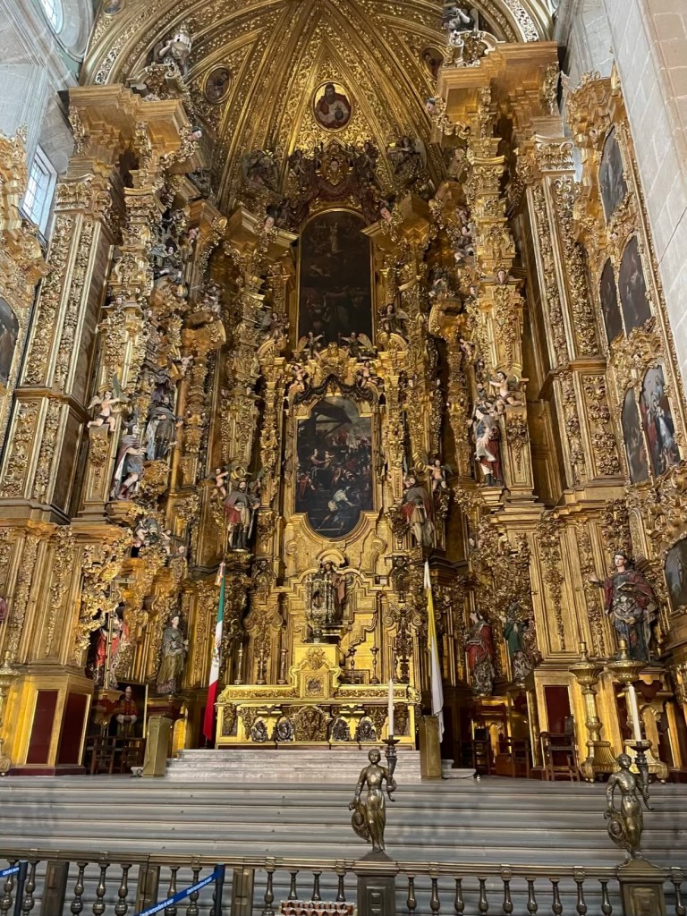 Wir schauen uns die Kathedrale näher an und im Innern ist sie übervoll verziert und vergoldet.