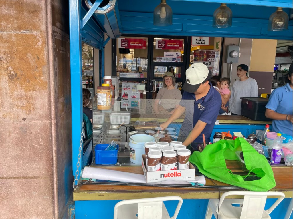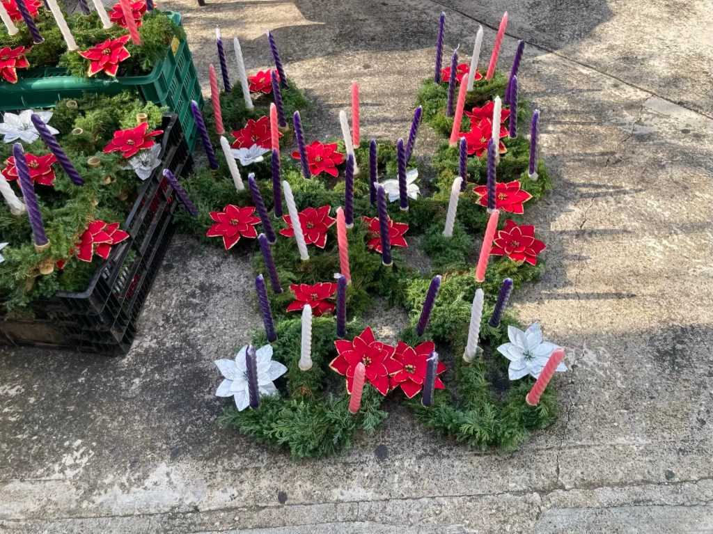 Wir probieren mexikanische Crêpes (auch lecker) und staunen über die Adventskränze mit 5! Kerzen.