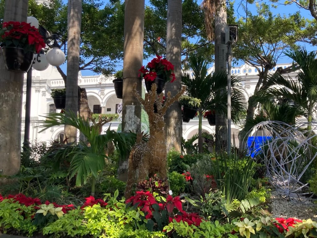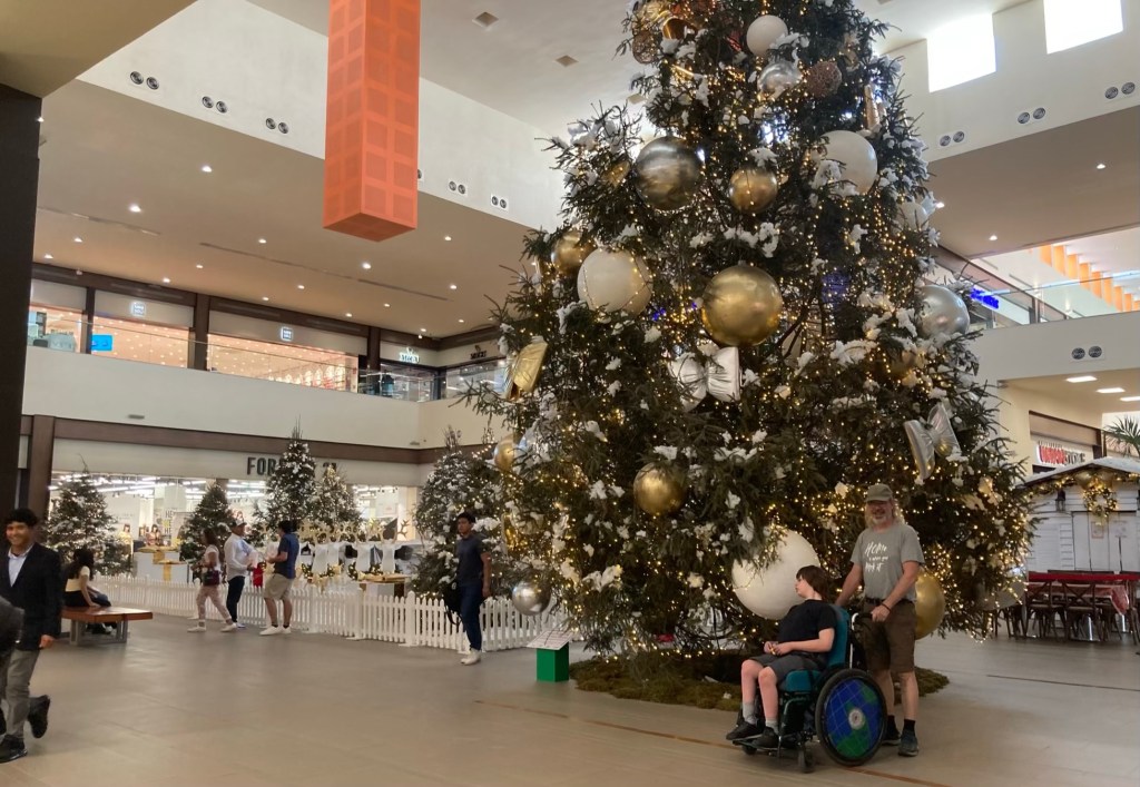 Wegen des unguten Gefühls, dass wir das Teil hier nicht bekommen werden, bestellen wir es parallel auch in Hannover und Holger holt es ab. Da KFZ-Ersatzteile von Privatpersonen nicht nach México verschickt werden dürfen ist ein Versand per Paketpost nicht möglich. Über WhatsApp finden wir Sandie und Karsten von „Ewald On Tour“, sie fliegen Ende des Jahres von Deutschland nach Cancun und würden uns das Teil mitbringen. Also schickt Holger das Paket schnell per DHL-Express zu den beiden. Wir vertreiben uns die Wartezeit in der Stadt und schlendern durch (klimatisierte) Einkaufszentren. Die Weihnachtsdekoration steht schon.