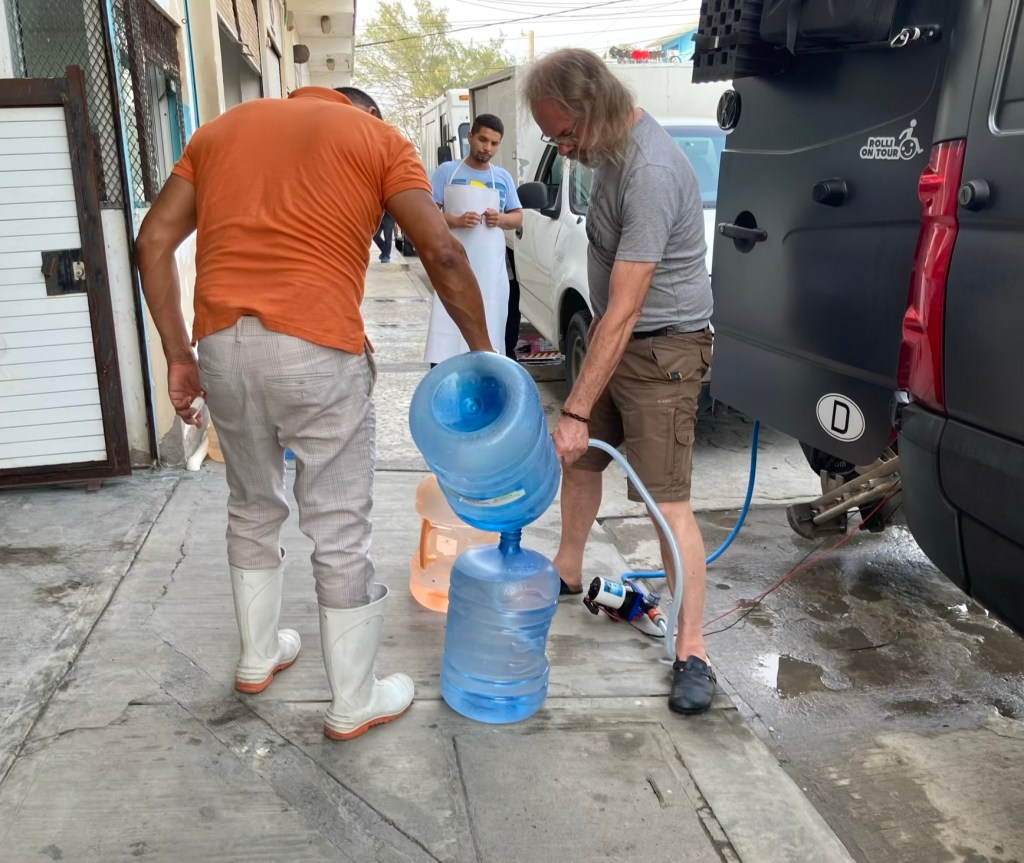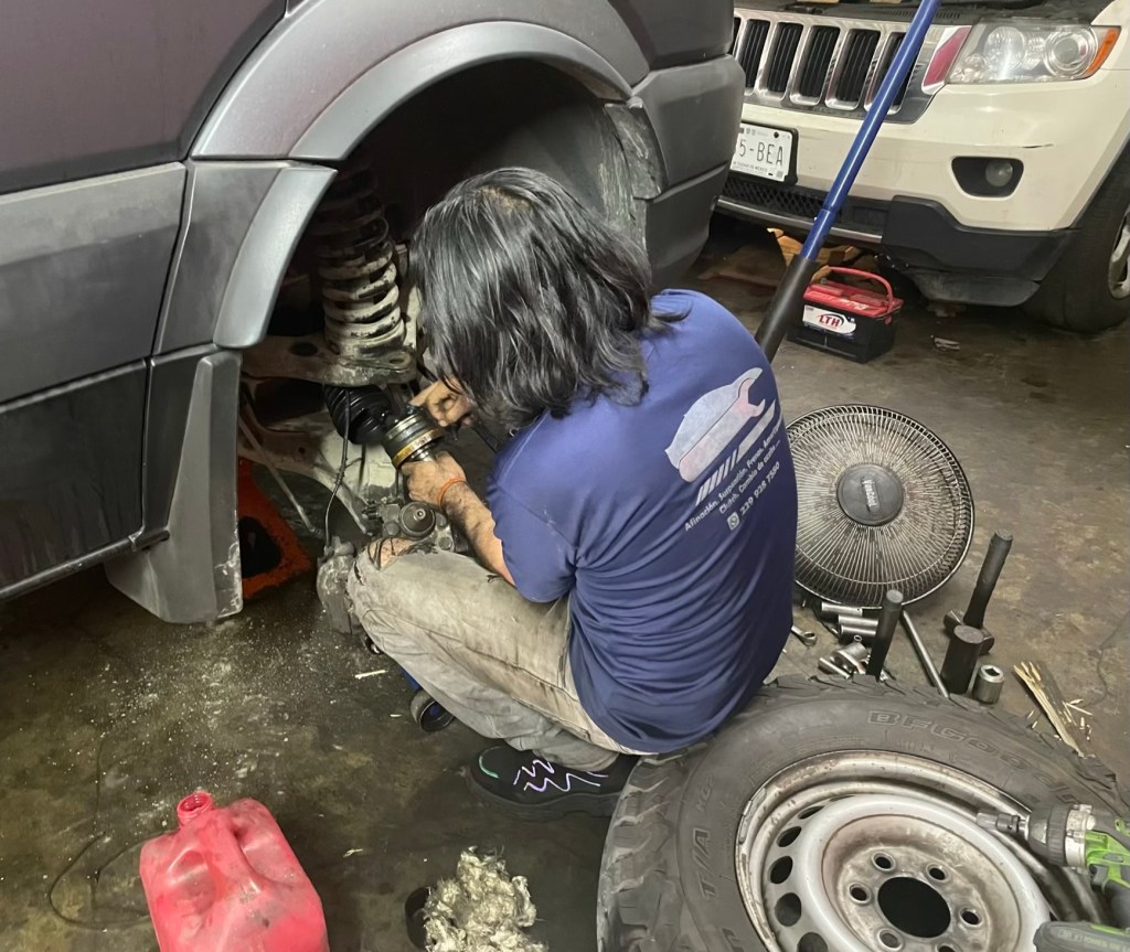 Inzwischen stellt sich heraus, dass VW in Mexiko das Ersatzteil tatsächlich nicht liefern kann, und wir überlegen ein Provisorium einzubauen, um weiterfahren zu können. Eduardo und seine Werkstatt finden wir über iOverlander und sie bauen eine ähnliche Staubmanschette ein. Das sollte erstmal für ein paar Wochen halten. Zum Abschied müssen wir uns noch auf der Wand in der Werkstatt „verewigen“. 😉