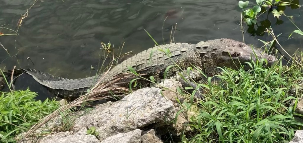 Gleich nach dem Hellwerden (oder etwas später😉) gucken wir uns die Kunstwerke der Olmeken an. Auf dem Weg begegnen uns noch weitere „Bewohner“ der Gegend und des See‘s.