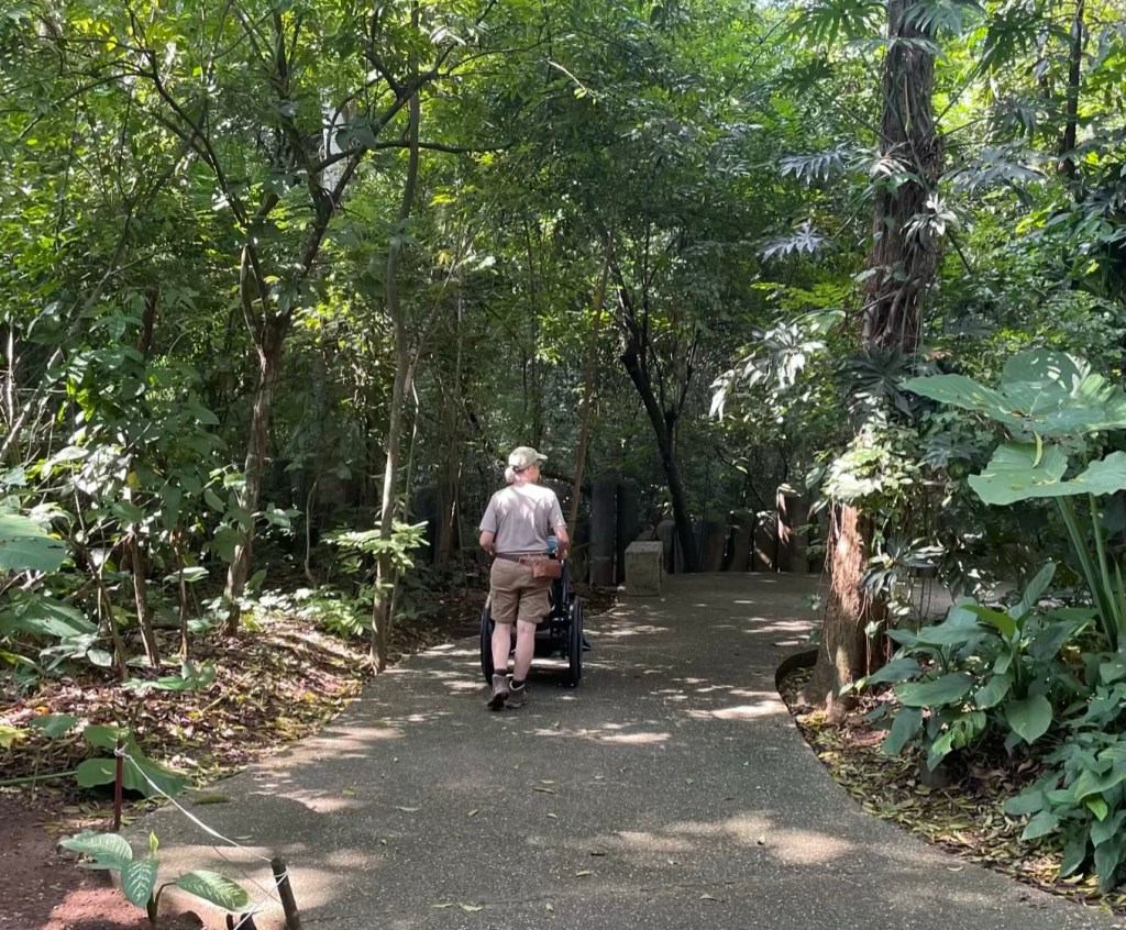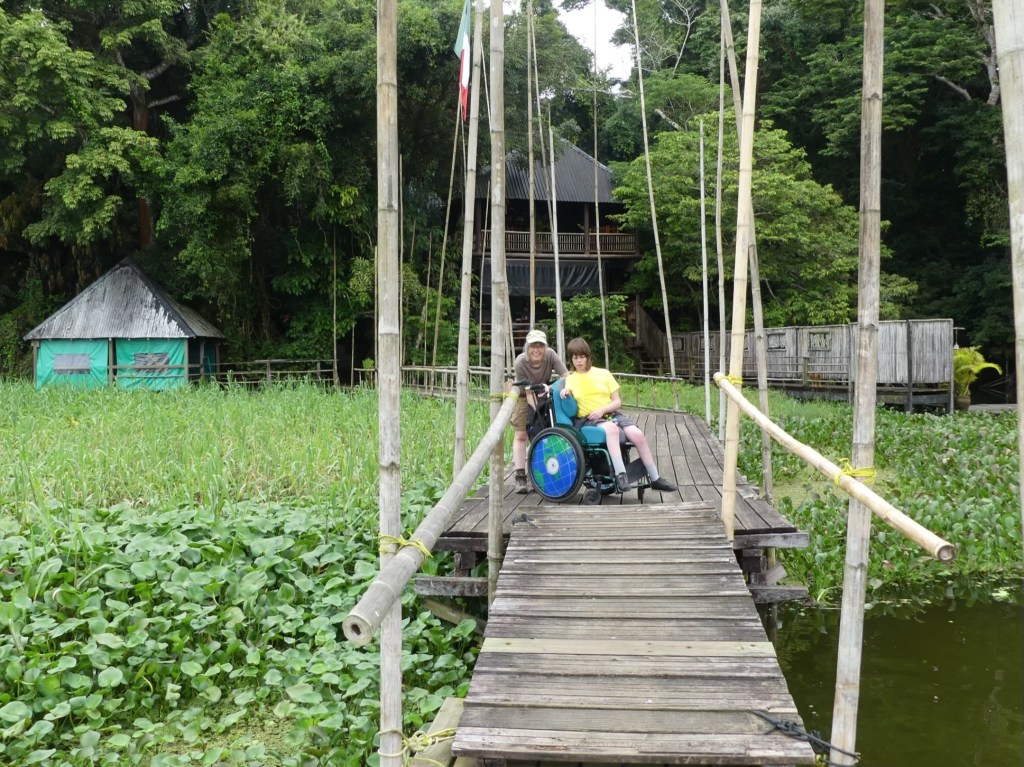 In der Nähe gibt es das Reservat Nanciyaga und die Trail’s können mit Führer gegangen werden. Leider stellt sich heraus, dass sie nicht rolligerecht sind. „Der Weg ist teilweise felsig und steil“ sagt der nette Parkführer. So beschränken wir uns auf den kurzen ausgebauten Weg runter zum Wasser.
