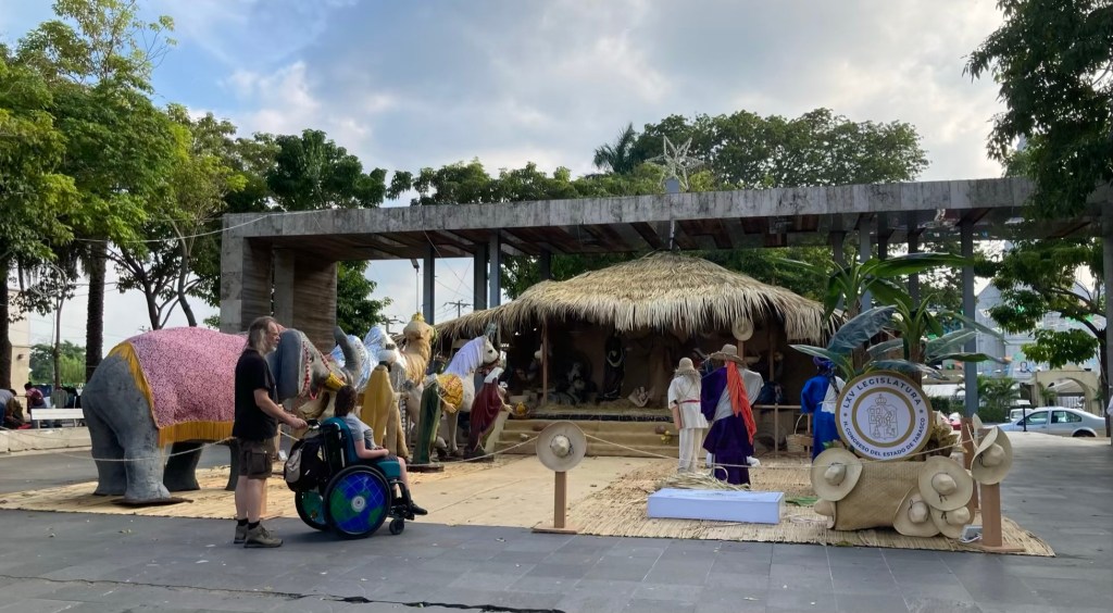 Auf der Straße kommt uns dann wieder eine der Prozessionen entgegen, die laufen in der Vorweihnachtszeit, oft mit Fackeln, so eine Art Pilgerweg. Der 12. Dezember ist Tag der Nationalheiligen von México, „Nuestra Señora de Guadalupe“. In der Woche davor trifft man überall auf solche Läufe.