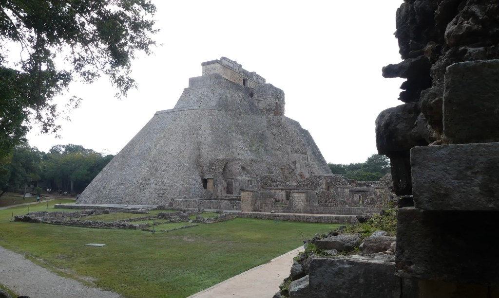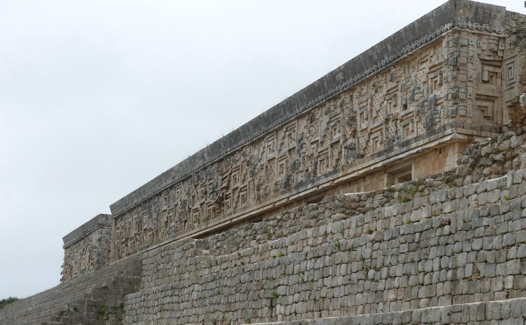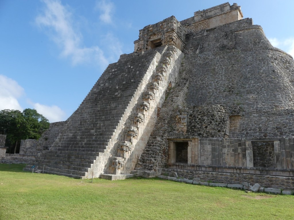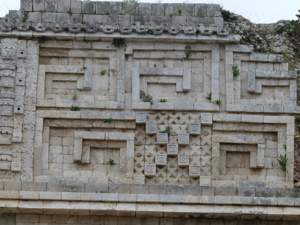 Wir kommen in Uxmal am späten Nachmittag an und dürfen direkt vor dem Eingang auf dem Parkplatz übernachten. So sind wir, ganz ungewöhnlich für uns, bereits vor dem größten Besucheransturm, um kurz nach acht in der Anlage. Uns fallen besonders die aufwendig verzierten Fassaden und die mächtige Größe der Bauten auf.