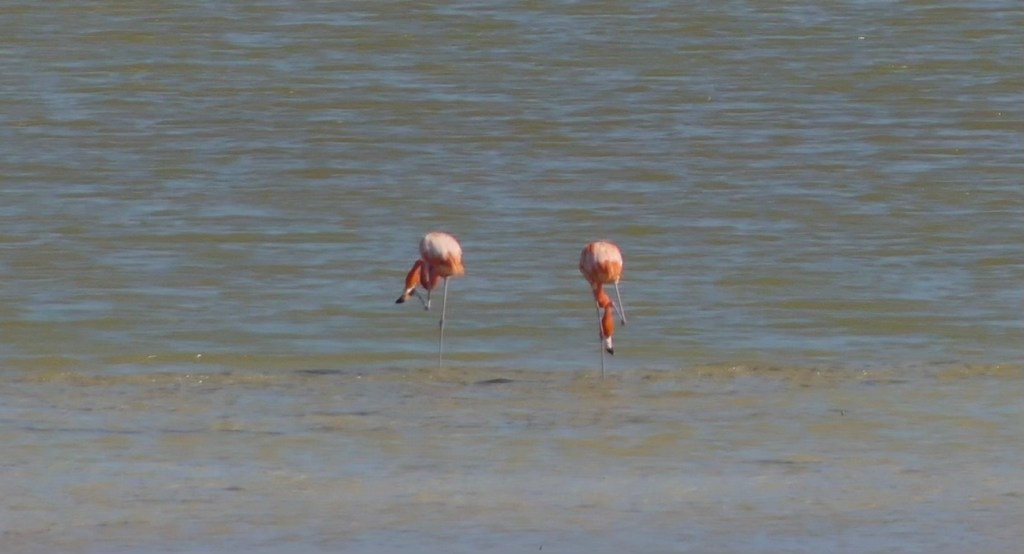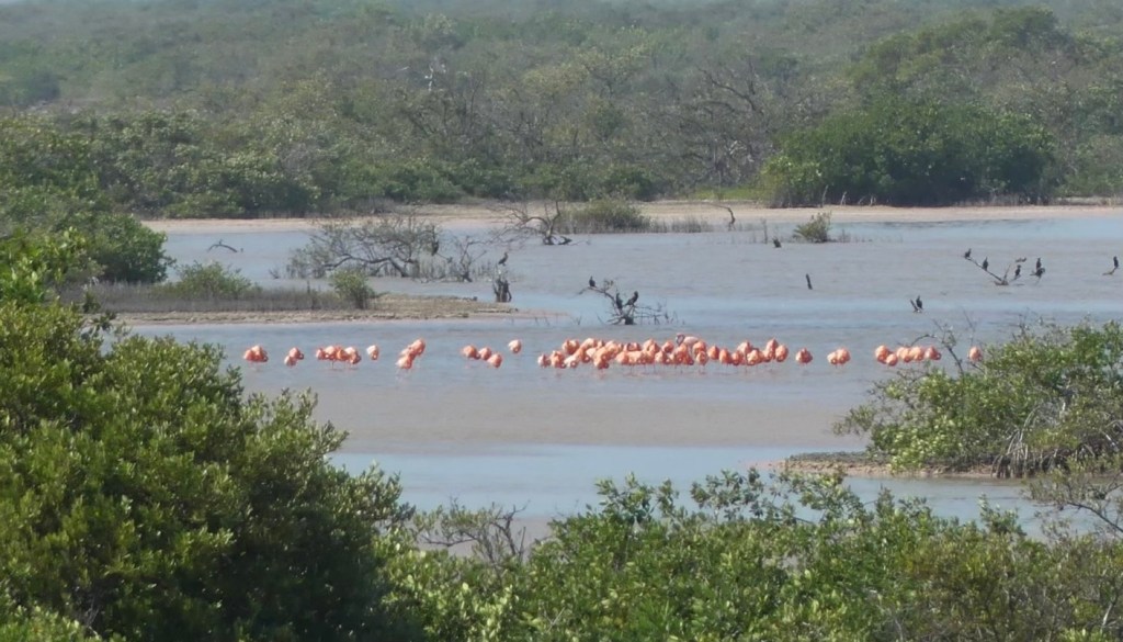 Bei der Weiterfahrt, heute ist der 23.12. und wir haben uns bei Andrea und Sebastian an der Cenote Xnuuk über Weihnachten angemeldet, entdecken wir noch Flamingos.