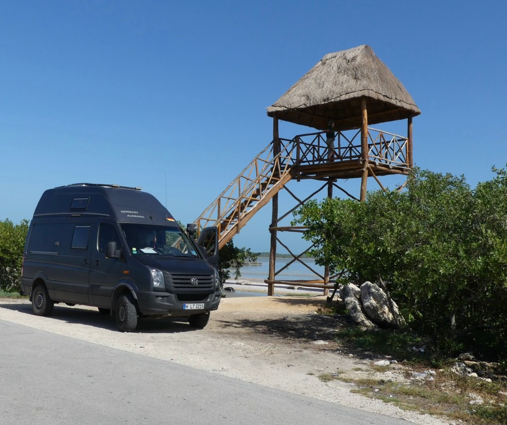 Wir fahren noch bis Puerto Morelos und übernachten bei Marty, der hier ein, wie er es nennt „Traveler’s Assistance Center”, betreibt. Wir haben ein Quietschen an rechten Vorderrad und Marty besorgt uns innerhalb von 10 Minuten einen Termin für morgen bei einem Monteur. Einfach toll, wie uns immer wieder geholfen wird!