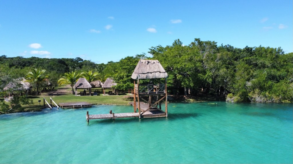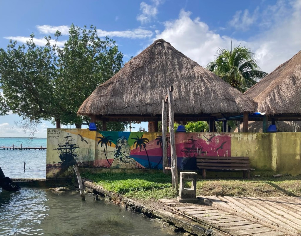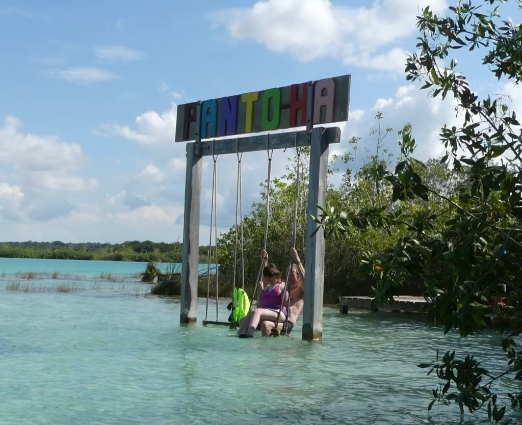 So tingeln wir weiter nach Bacalar, finden einen freien Stellplatz an der gleichnamigen Lagune in der Stadt, und richten uns erstmal ein. Neben uns steht ein münchner T5 und es dauert nicht lange, bis der Besitzer zurück kommt und wir angesprochen werden. „Das ist ein ruhiger Stellplatz, ich bin schon eine Woche hier“ sagt er. Nur zwei Stunden später, wir sitzen gerade beim Abendessen, kommen unzählige Busse und es zieht eine nicht enden wollende Karawane junger Leute an uns vorbei. Die geschätzt zweihundert Pfadfinder versammeln sich auf dem Areal direkt neben uns, essen Abendbrot und bauen ihre Zelte auf. So schnell ist es aus mit dem ruhigen Platz…
