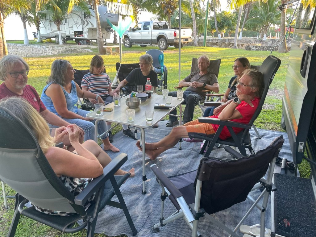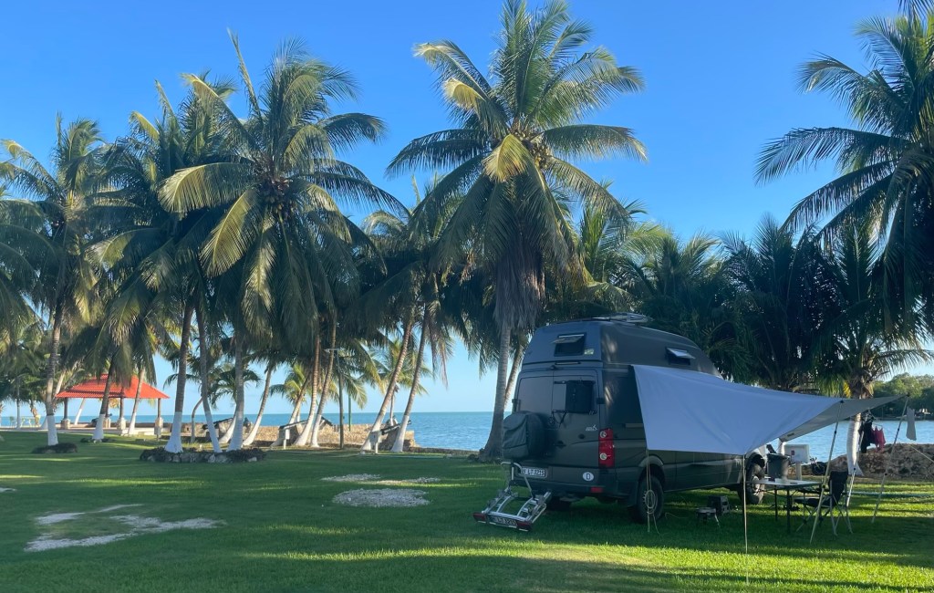 Am nächsten Morgen löst sich die Runde auf, Birgit und Matthias fahren wieder nach Norden zurück in die USA, Heidi, Gerd, Moni und Michael wollen zu den Ruinen von Lamanai in Belize und wir lassen es ruhig angehen und sind die Letzten, die den Platz heute verlassen. Unser Ziel ist erstmal die Grenze nach Belize.