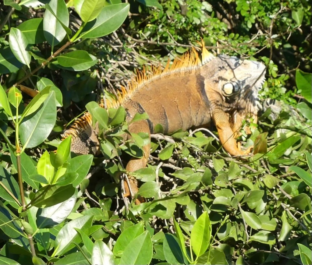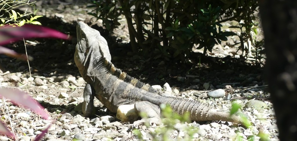 Mitten in der Stadt treffen wir auf Leguane. (Der Futterkasten ist für die Grauhörnchen.)