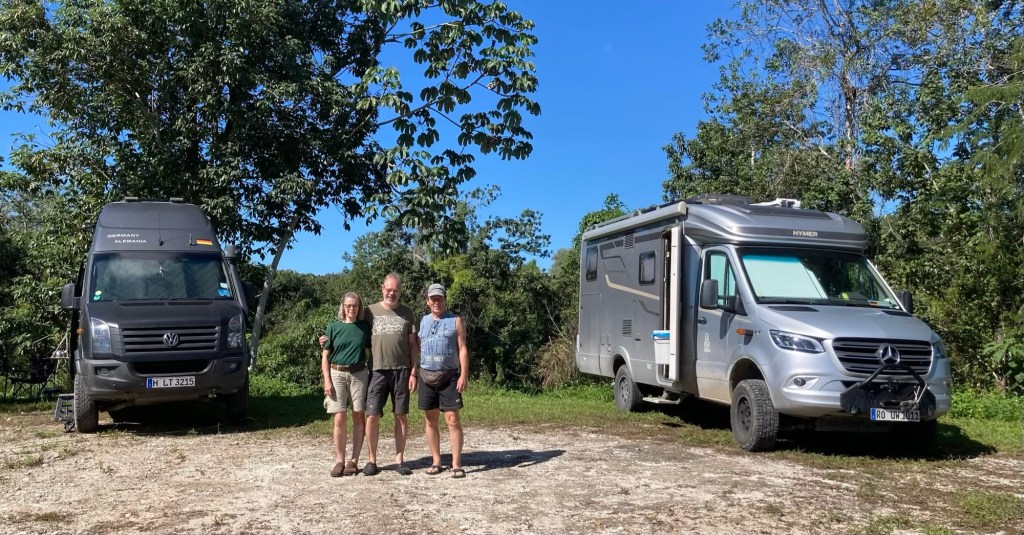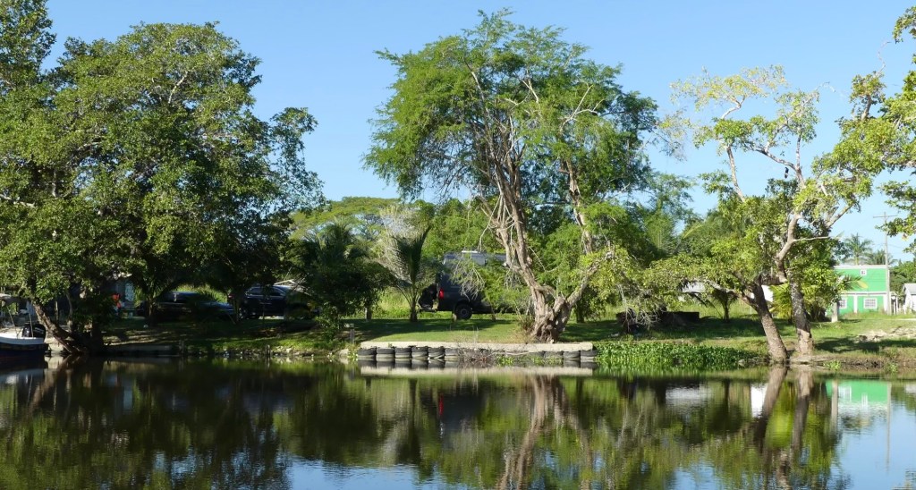 In Belize ist so einiges anders, die Amtssprache ist hier Englisch. Nach so vielen Monaten im Spanisch sprechenden México ist das erstmal gewöhnungsbedürftig. Wir sind auch überrascht über die guten Straßen und relativ wenig Müll am Straßenrand. So fahren wir heute noch bis Orange Work Town, besorgen uns noch Geld (hier ist er Belize Dollar BZD 2:1 an den US Dollar gekoppelt) und suchen uns dann einen Stellplatz bei einem Bootsunternehmen mit dem wir morgen ein Bootsausflug auf dem New River machen wollen.