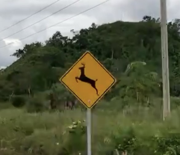 Auf guter Straße, und fast ohne die im México so beliebten „Topes“ (Wir vermissen sie kein bisschen) fahren wir durch eher flache Landschaft, haben zum Glück aber Abwechslung bei den Warnschildern.