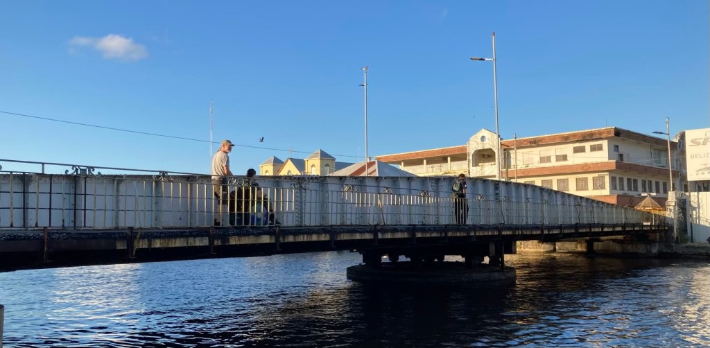 und schlendern durch die Altstadt am Hafen und über die Swing Bridge, eine Drehbrücke die den Haulover Creek, einen Seitenarm des Belize River, überspannt. Sie gilt als älteste Drehbrücke Mittelamerikas und ist eine der wenigen noch funktionierenden, manuell betriebenen Drehbrücken weltweit.