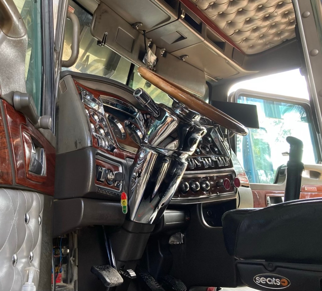 Apropos schön, gleich nebenan wird gerade die Klimaanlage eines LKW repariert. Wir können mal einen Blick in das Fahrerhaus werfen. Hier liebt jemand sein Fahrzeug richtig doll.