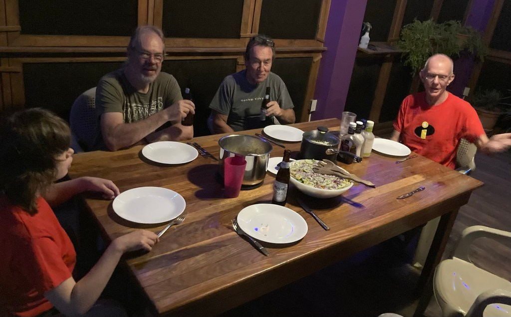 Später treffen wir in Isla Aguada wieder auf Moni und Michael. Die beiden haben sich mittlerweile mit Birgit und Matthias, und Heidi und Gerd zusammengetan. Die vier haben wir ja schon in Teotihuacán kurz kennengelernt. So sitzen wir am Abend zu neunt um den Tisch.