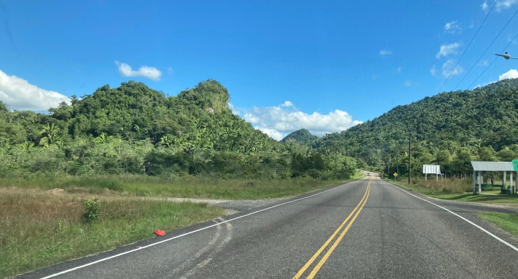 Da wir nun eine Woche Zeit haben, gucken wir wieder rüber an die Karibik und besuchen Hopkins, ein ehemaliges Fischerdorf, an der Küste. Dafür fahren wir heute den etwas südlicher gelegenen “Humming Bird Highway“, der landschaftlich schöner ist als der nördlichere.
