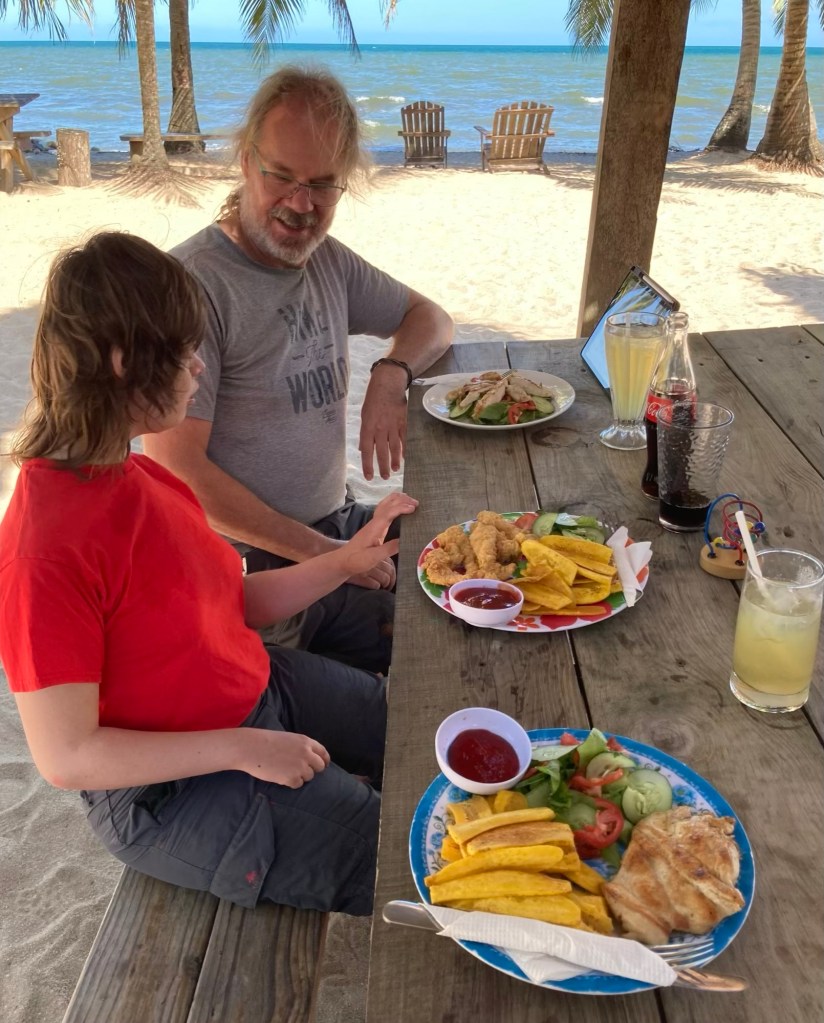Beim Essen bekommen wir noch Besuch von Samuel mit Familie. Wir haben dann gemeinsam gegessen und uns nett unterhalten. Dabei haben wir viel über die Entstehung des Dorf‘s und auch die jüngere Geschichte erfahren. So kommen noch immer Leute aus Deutschland hierher um sich in Belize niederzulassen.