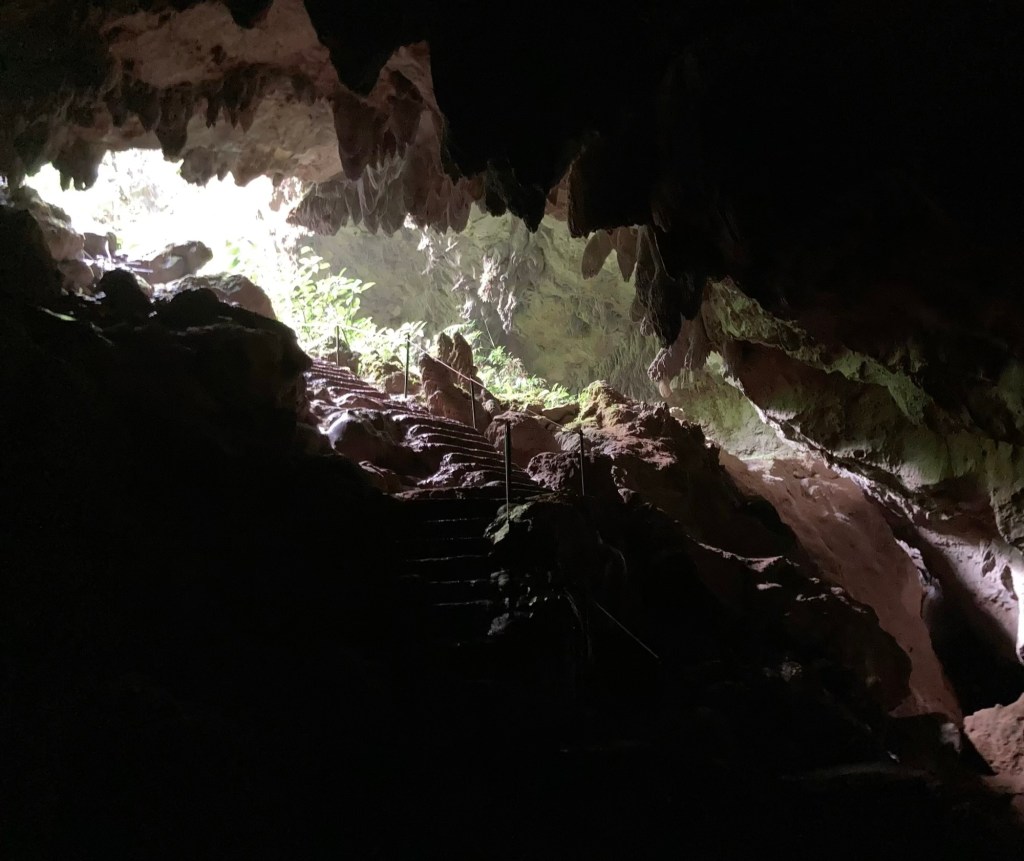 In der Höhle ist es stockdunkel und mit Taschenlampe oder Blitz gibt es keine guten Bilder. Wir gehen bis zu einem Punkt, von dem man nur mit Führer und im Wasser weiter kommt. Das ersparen wir uns heute.😉