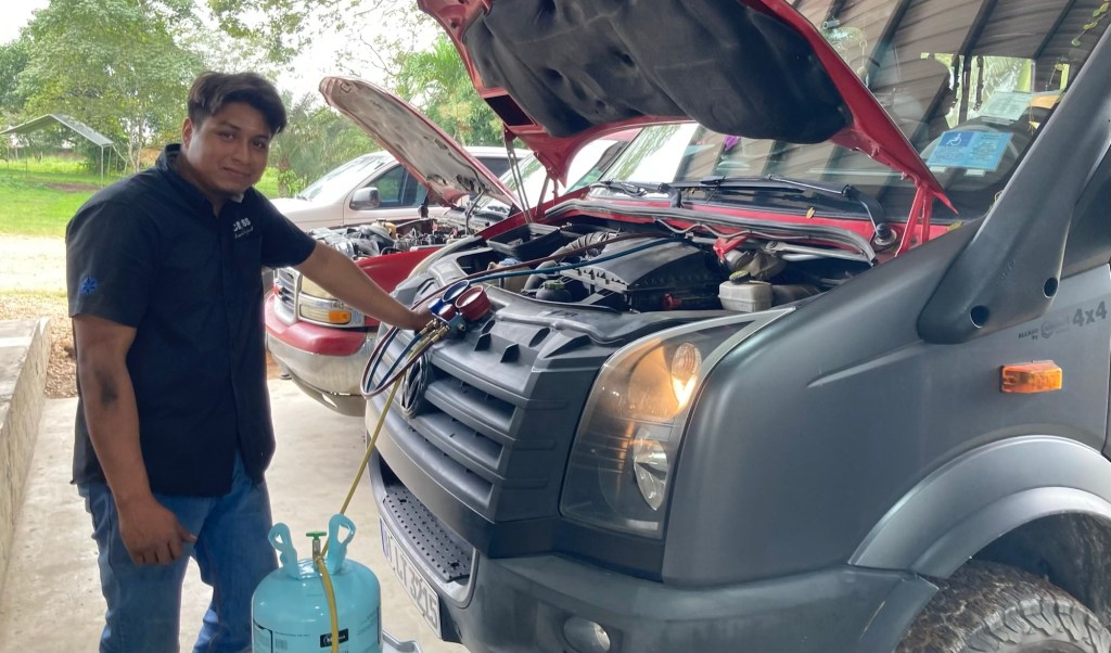 „Wenn du eine gute Werkstatt für Autoklima suchst, musst du nach „Spanish Lookout“ zu ACROSS fahren. Da fahre ich selber auch hin“ hat uns unser Gastgeber Ralph noch den Tipp gegeben und gleich mal telefonisch angefragt, ob wir kurzfristig vorbei kommen können. „Klar, zum checken und Fehler finden haben wir sofort Zeit“ ist die Antwort. Also im warmen Auto auf in den Westen von Belize. Da Belize nur ein kleines Bisschen größer ist als Hessen und in Ost-West Richtung gerade mal gut 100 km breit ist, kommen wir auch schnell an.