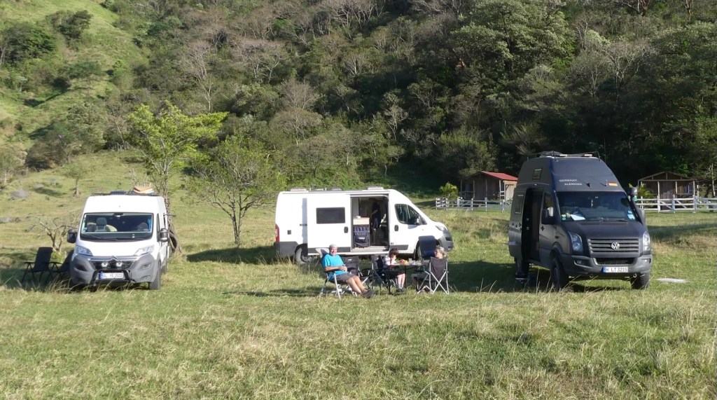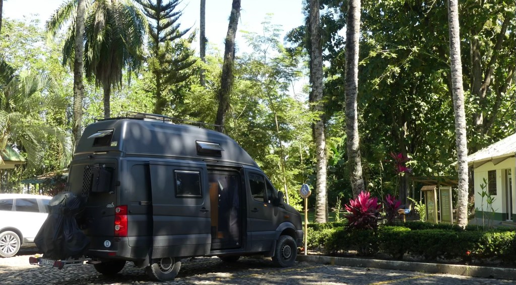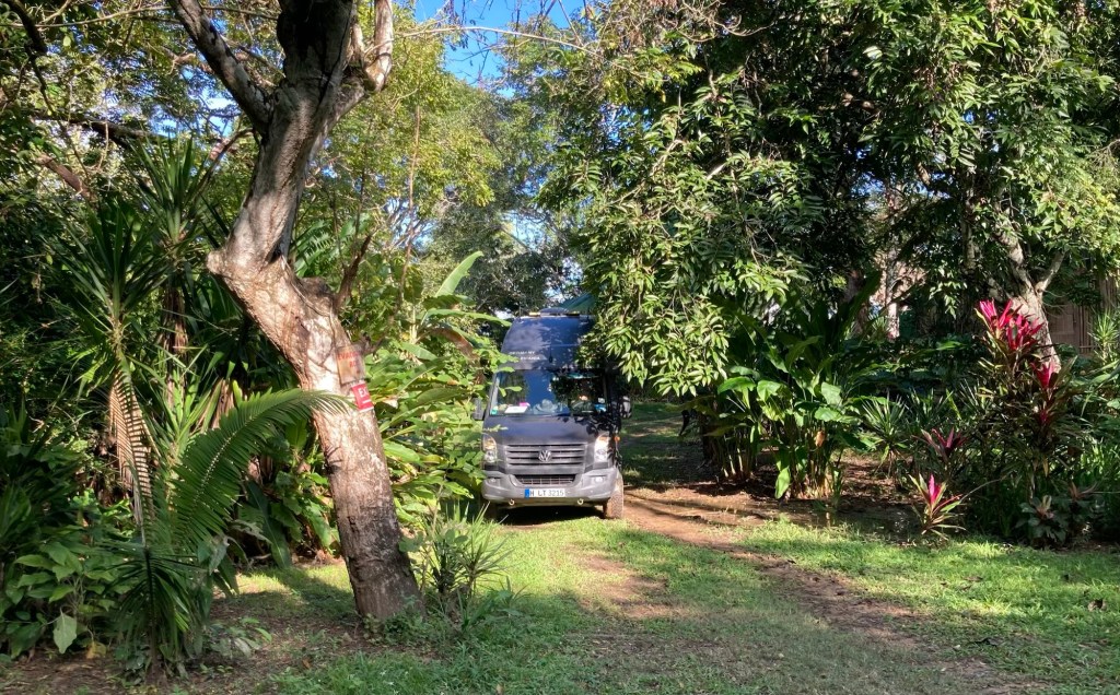 So kommen wir erst im Dunkeln auf der Finca an. Was haben wir uns noch mal vorgenommen? „Niemals im Dunkeln fahren“! Nun ja, so schnell werden die Vorsätze gekippt. Die Leute hier sind sehr nett, ein Angestellter fährt den letzten Kilometer mit dem Moped voraus und zeigt uns einen Stellplatz für die Nacht.