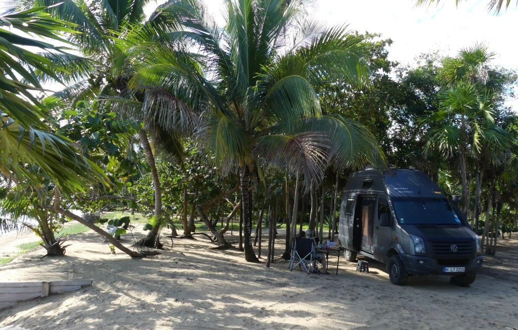 Die „Straße“ wird etwas schlechter und dazu fällt nun auch noch die Klimaanlage aus. 🥵 Dafür erwartet uns ein kleines Paradies am Strand.
