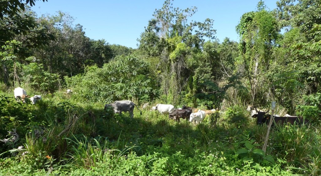 Heute Morgen bekommen wir Besuch von den Rindern und Pferden der Finca,