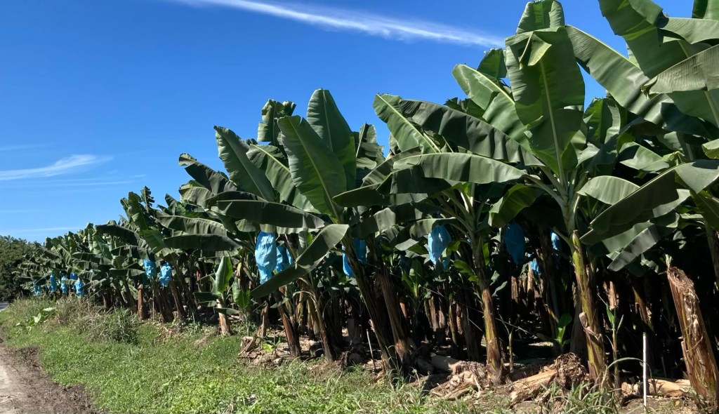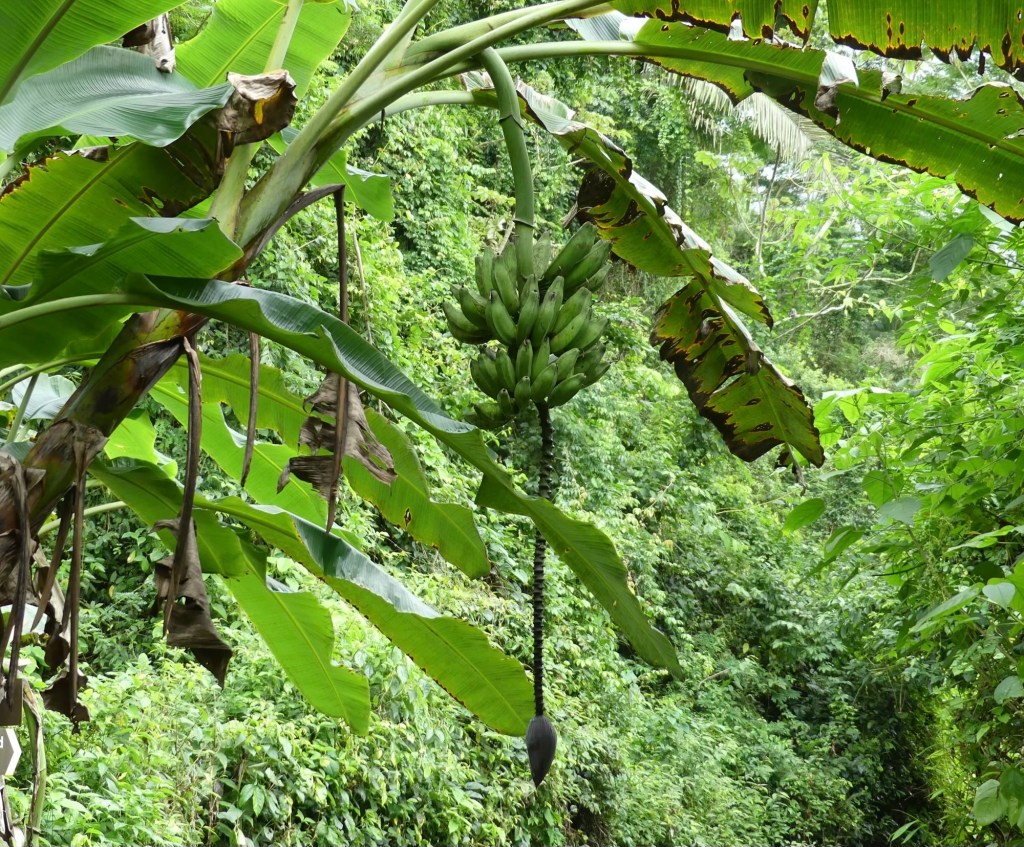 Erstmal müssen wir wieder die schier unendlichen Bananenplantagen durchqueren. Zum Schutz der Früchte wachsen alle in Plastikfolie verpackt. So wird die gleichmäßige Reife gefördert und zusätzlich werden die Säcke von innen mit Pestiziden benetzt.