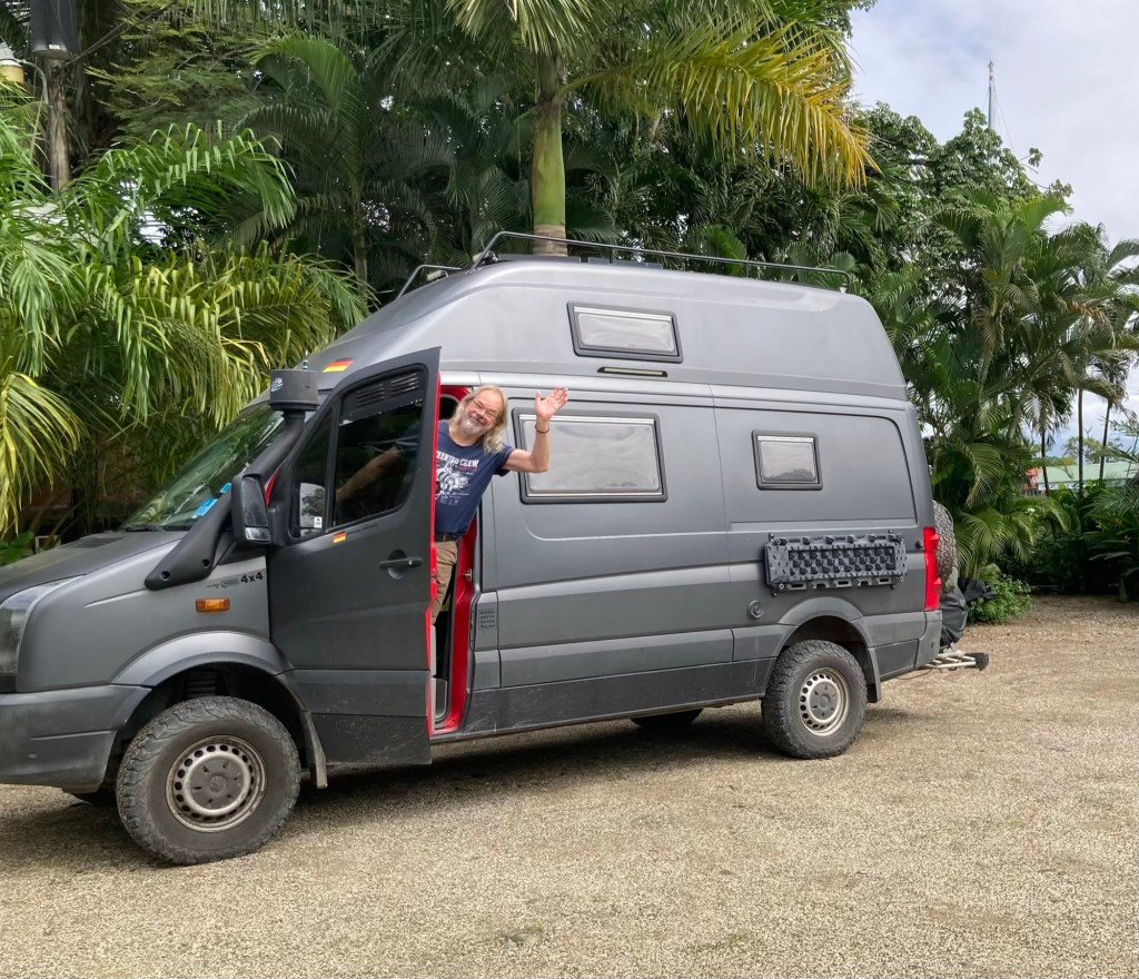 Leider ist die Batterie hinüber und der Anlasser sagt nichts mehr. Mina, die Betreiberin des Campingplatzes, holt zuerst ihr eigenes Auto für die Starthilfe und, als das nicht ausreicht, einen Mechaniker. Mit zwei Batterien gelingt das Starten und Rocky blubbert so vor sich hin.
