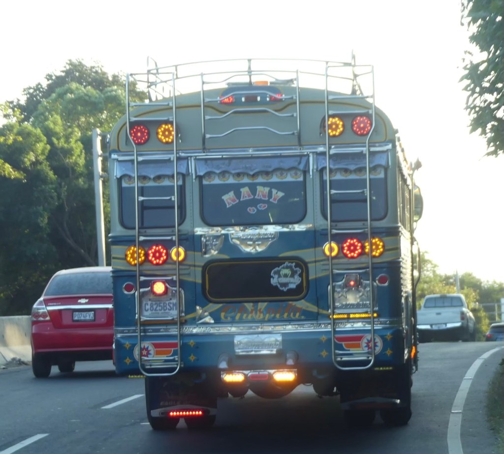 Immer wieder sind alte Busse (Chicken Busses) unterwegs. Hier in Guatemala werden sie liebevoll geschmückt und gepflegt.
