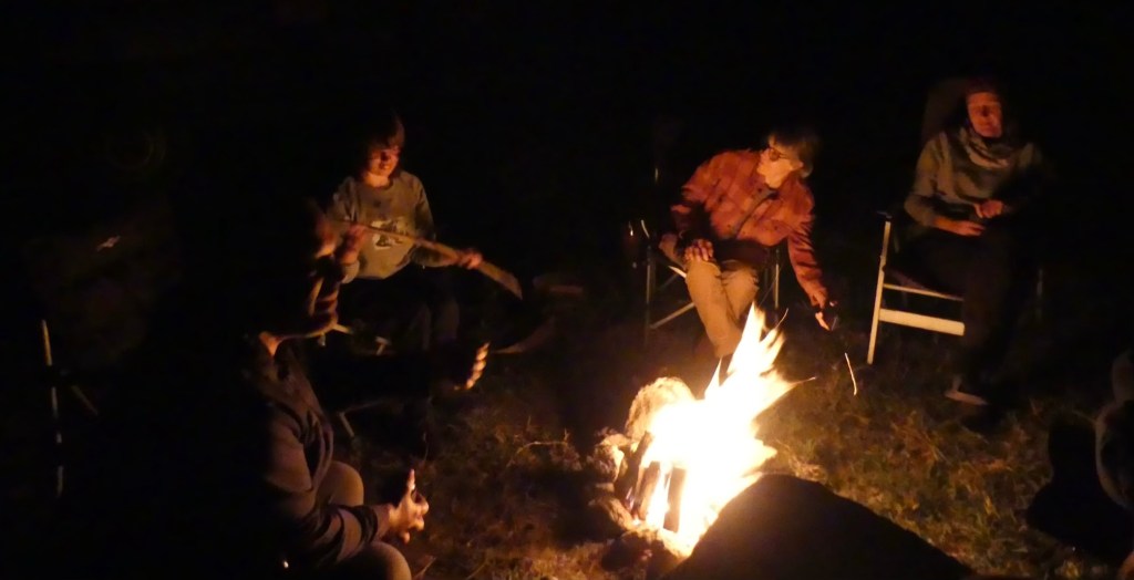 Hier wollen wir noch eine Nacht bleiben, holen am Abend das Lagerfeuer nach (heute ist nicht so viel Wind), beobachten den Fuego in der Ferne und sehen in der Nacht die Lava an der Flanke runterlaufen.