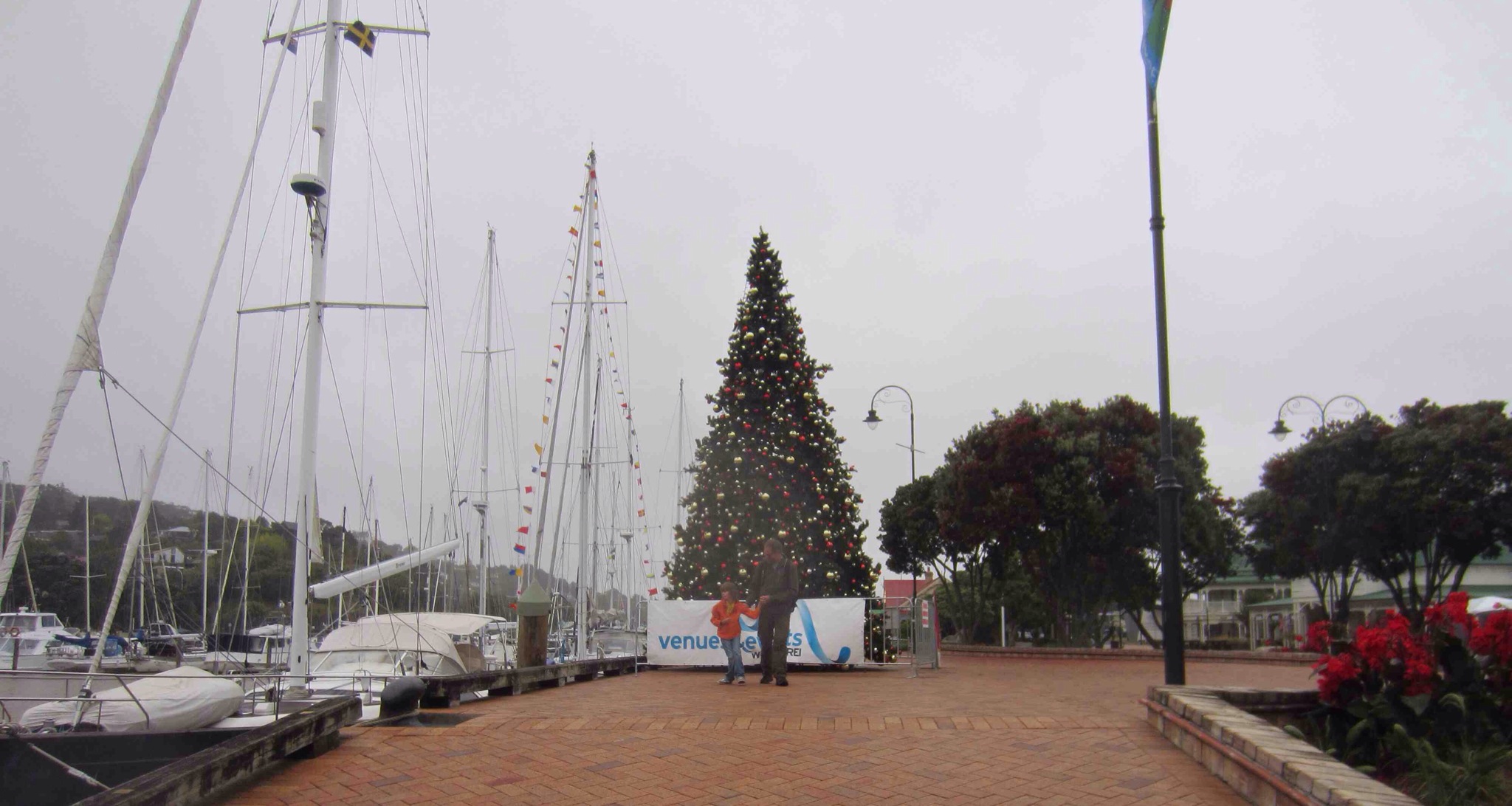 Also umdrehen und zurück zum Highway 1. Der Regen treibt uns dann noch in das Visitorcenter der einzigen Ölraffinerie in NZ. Eine Multimedia-Show erklärt anschaulich den Prozess in einzelnen Schritten. Da das Wetter nun etwas besser ist fahren wir nach Whangarei, schlendern durch den Stadthafen (Town Basin) mit Weihnachtsbaum,