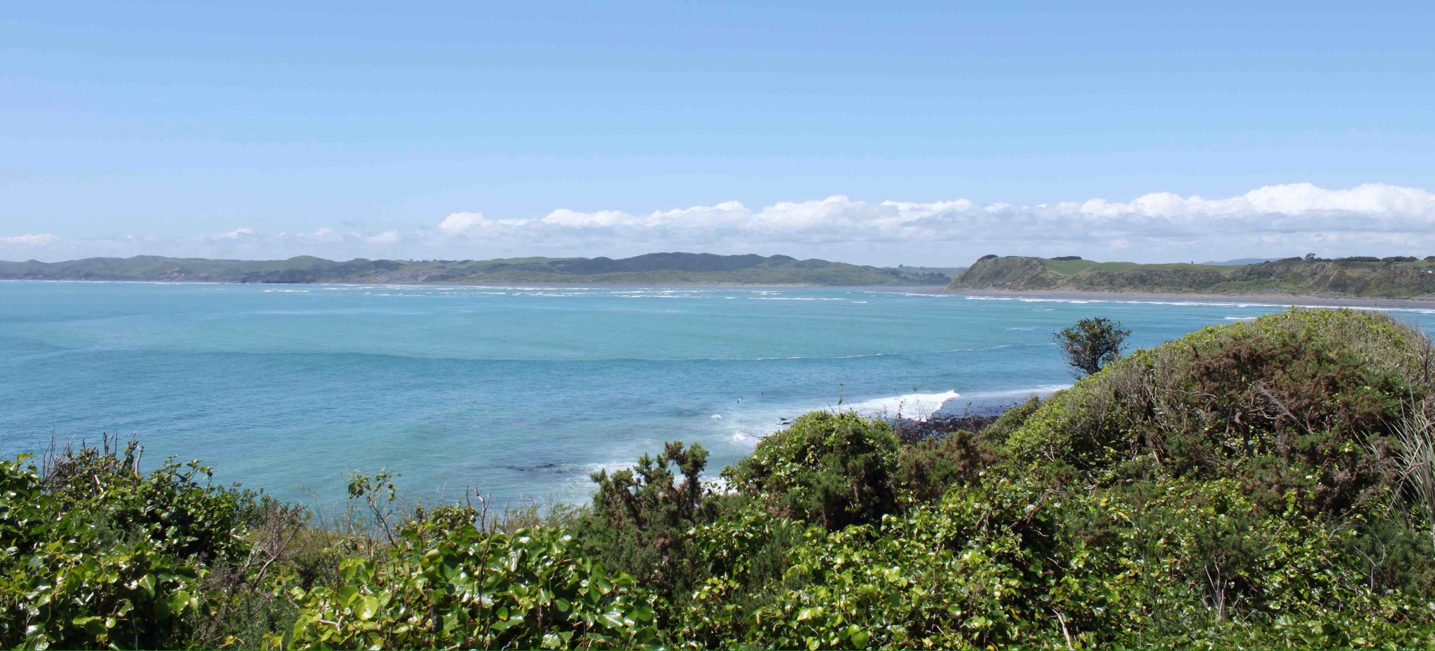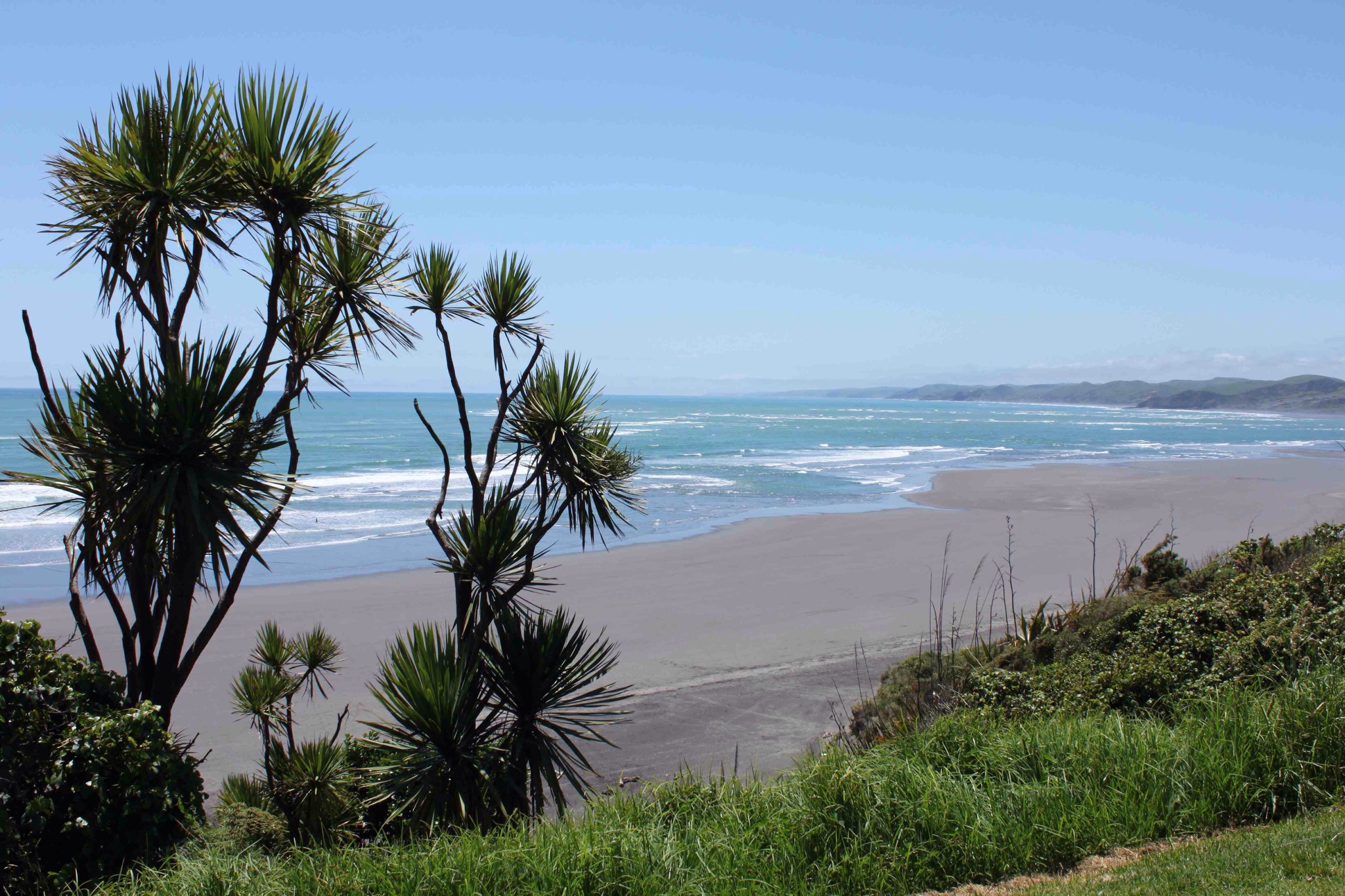 Nach einigen Kilometern Richtung Küste machen wir einen kurzen Stopp am schwarzen Strand von Mokau.