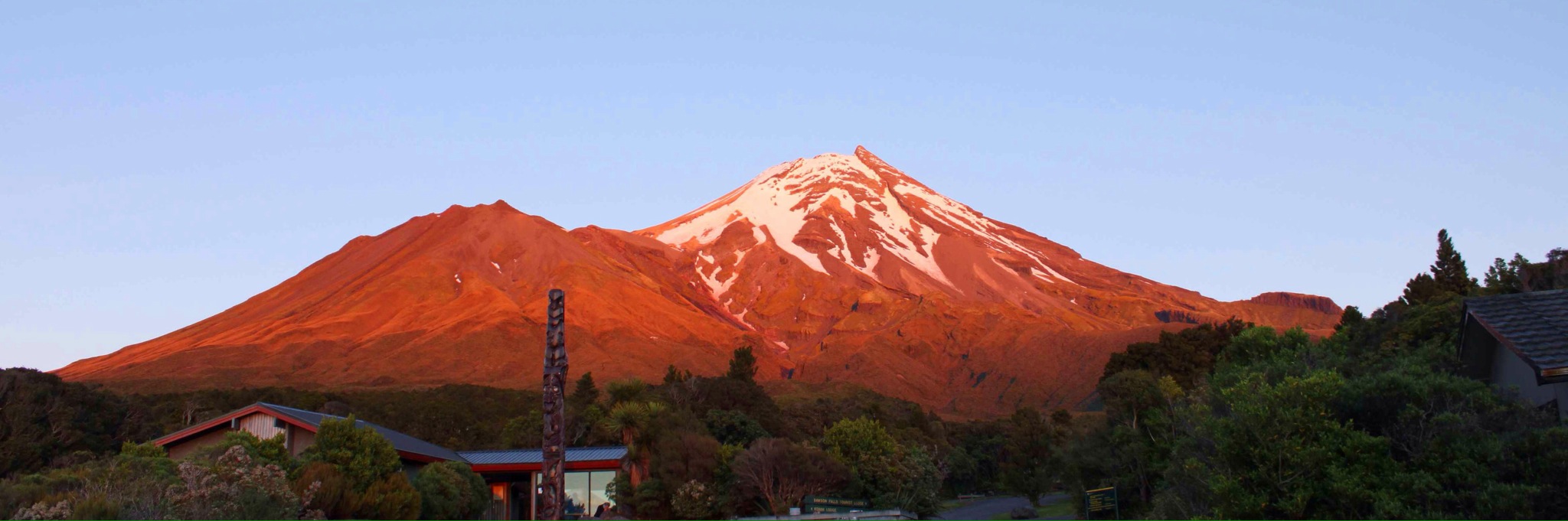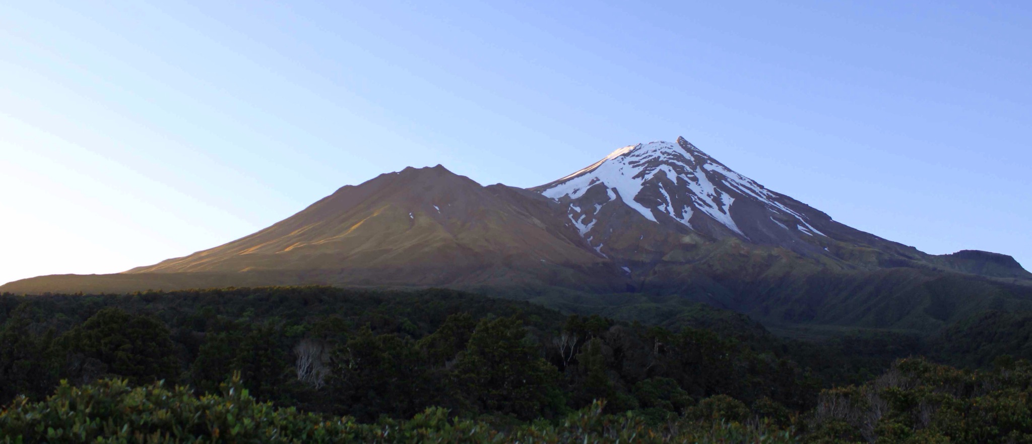 zum Mount Taranaki, einem Vulkankegel an der Westküste. Zuerst zeigt sich der gute reichlich bedeckt.