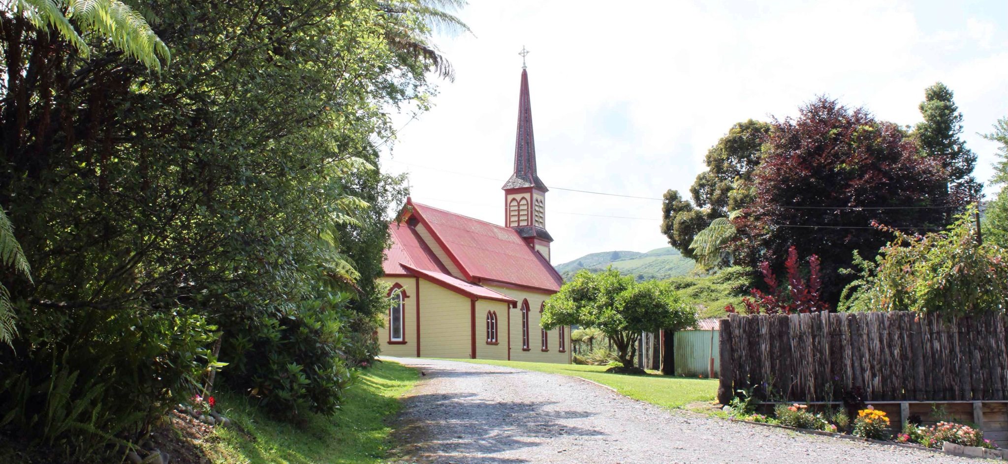 Nach einem gemütlichen Frühstück fahren wir weiter am Wanganui River entlang und machen unseren ersten Zwischenstopp in Jerusalem. Dort steht diese hübsche Holzkirche