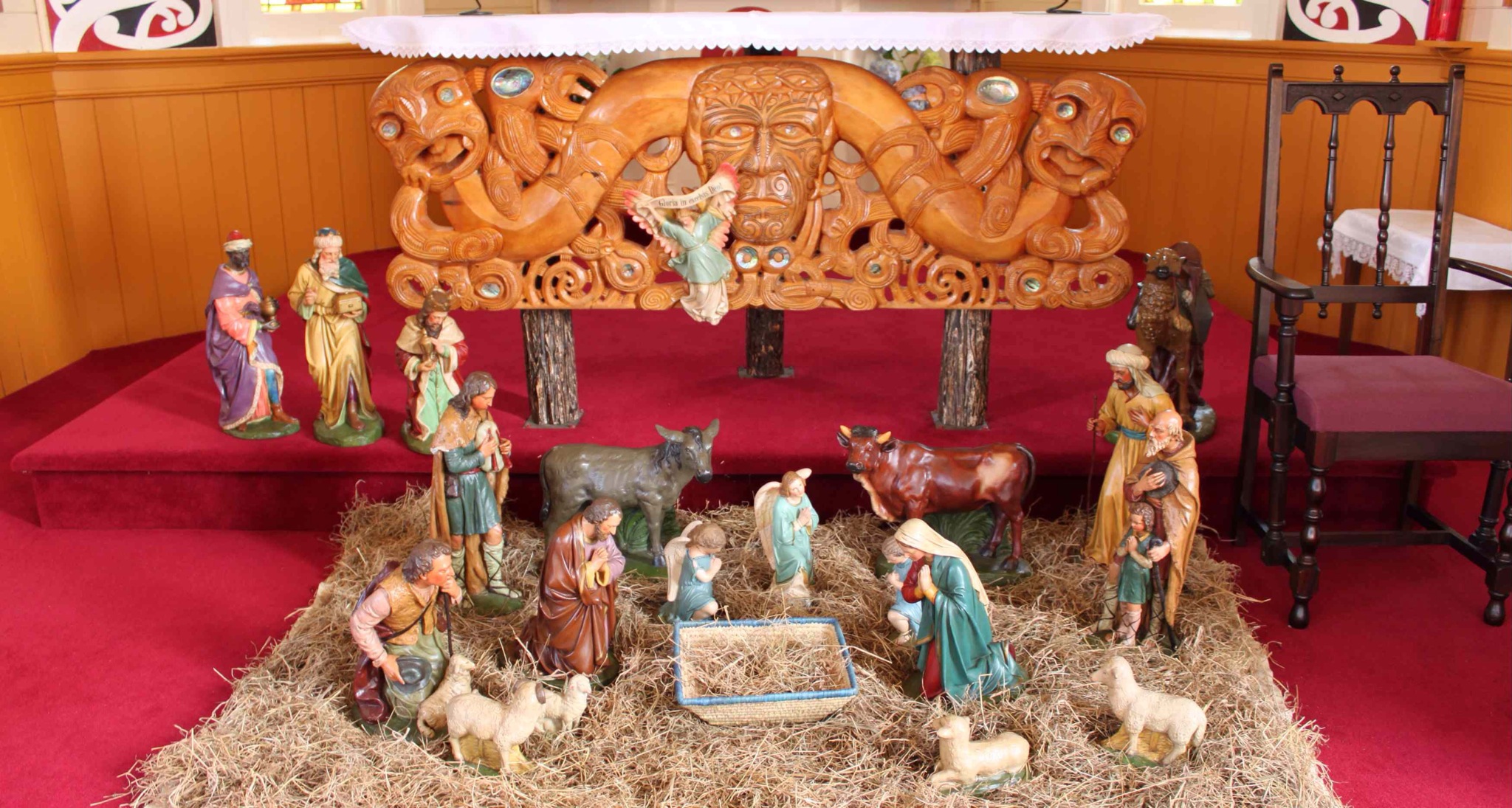 und wir bewundern die vor dem, für unsere Augen ungewöhnlichen Altar, aufgebaute Krippe – noch ohne Jesuskind.