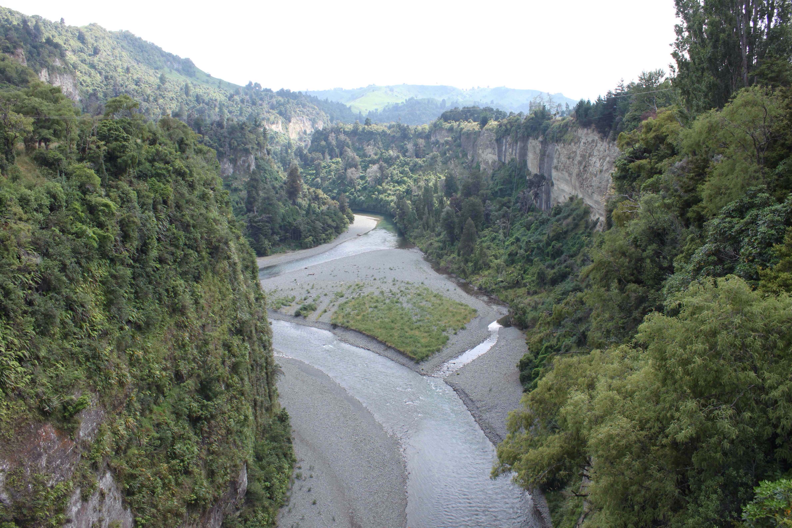 So alle zwei Jahre gibt es in der Gegend einen Ausbruch (Vulkan, nicht Strafgefangener). Der letzte war 2013 – beruhigend ?!? Drum übernachten wir heute in sicherer Entfernung (wie viel km sind sicher?) auf einem DOC (Naturschutzbehörde) Campground am Mokai Canyon. Hier direkt nebenan werden die tiefsten Bungy Jumps (80m) New Zealands angeboten. Jetzt ist da niemand mehr, das werden wir uns morgen ansehen.