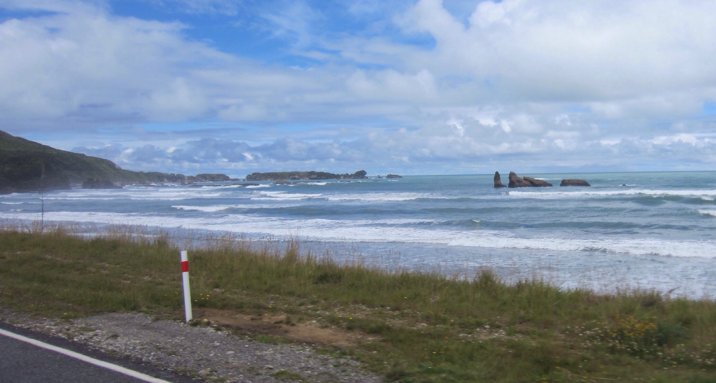 der entgegen kommende Verkehr hat hier Vorfahrt. Westport lassen wir rechts liegen und fahren lieber die Great Coastal Road an der Westküste Richtung Süden.