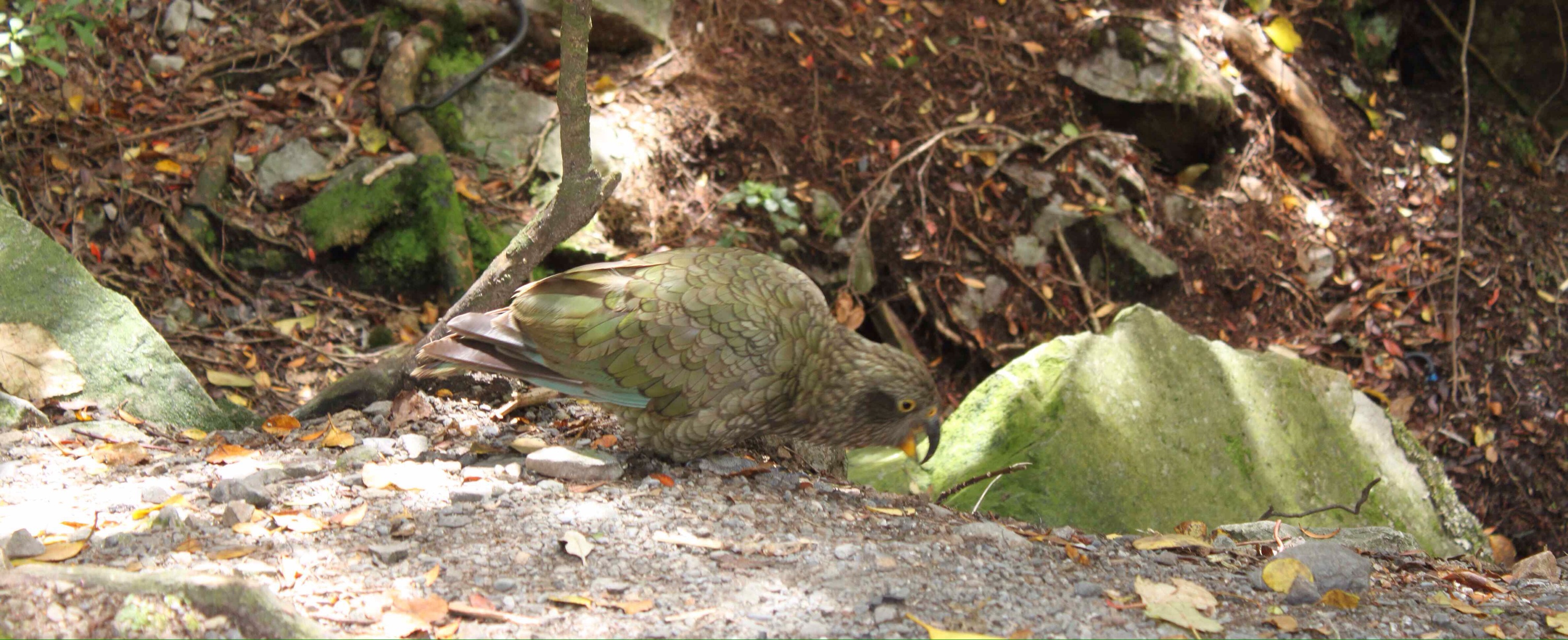 Die Passhöhe ist dann eher unspektakulär, nur einige Keas kommen uns besuchen.