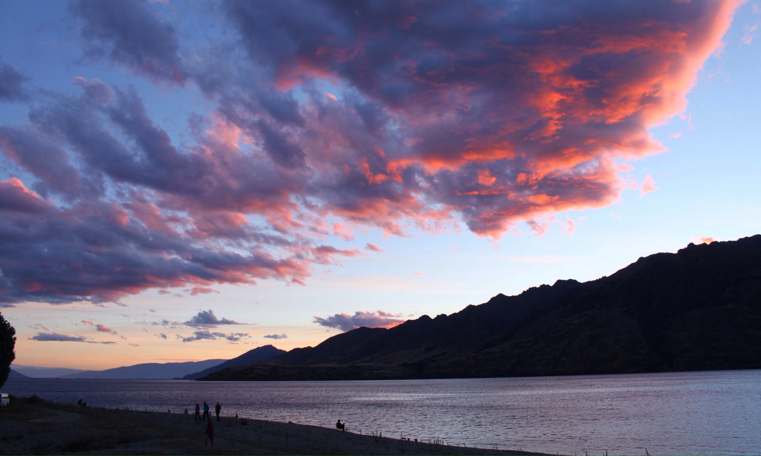 Wieder unten angekommen schlendern wir noch ein wenig durch die größte Stadt Neuseelands, fahren zurück auf „unseren“ Campground. Der Tag verabschiedet sich, oder wir werden von Neuseeland verabschiedet, nochmal mit einem fantastischen Sonnenuntergang…