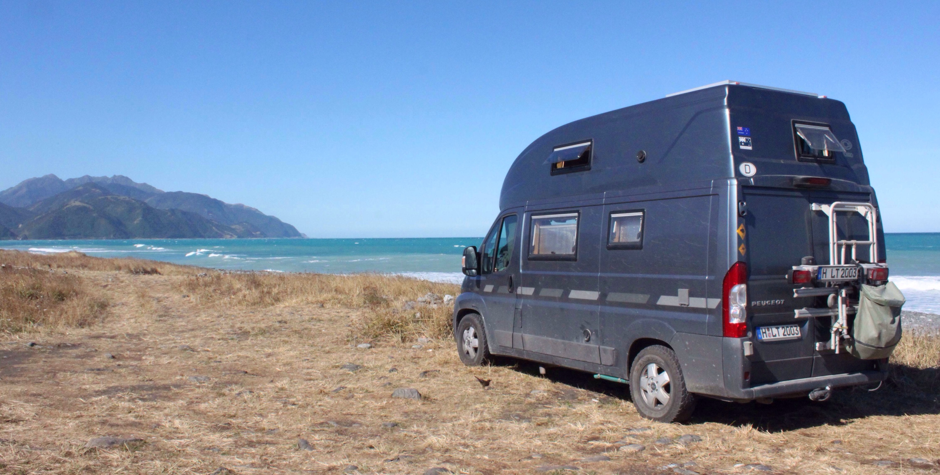 Nach einem schnellen Frühstück fahren wir zum Fähranleger. Wir müssen spätestens um 7.30 Uhr dort sein und machen uns frühzeitig auf den Weg, da wir mit Staus wegen des Berufsverkehrs rechnen. Wider Erwarten wirkt die Stadt beinahe wie ausgestorben, was unseren Eindruck von gestern bestätigt. In Auckland, der „Möchte-gern-Hauptstadt“ sah das ganz anders aus, dort waren immer mehrere Staus, egal wann wir unterwegs waren. Also sind wir sehr früh an der Fähre, was aber den Vorteil hat, dass wir weit vorne stehen und so nach der sehr ruhigen Überfahrt über die wegen der normalerweise sehr rauen See berüchtigte Cook Strait als eines der ersten Fahrzeuge die Fähre verlassen können. Der erste Weg führt uns zur i-Site, da wir für Henri einen neuen Abwasserschlauch brauchen und dafür einen Händler suchen. Wir bekommen den Tipp, im Homehardwareladen zu fragen. Wir machen einen Stadtbummel und gehen dorthin. Leider bekommen wir keinen Schlauch, aber die Adresse eines Yacht- und Campingausrüsters. Dort bekommen wir dann nicht nur den gewünschten Schlauch, sondern dieser wird vom Verkäufer auch gleich kostenlos angebaut, sogar das angebotene Trinkgeld lehnt er ab… die Hilfsbereitschaft und Freundlichkeit der Menschen hier ist schlicht unglaublich! Nach einem Imbiss am nahen Queen Charlotte Sound machen wir uns auf die Suche nach einem Übernachtungsplatz, natürlich nicht ohne zwischendurch anzuhalten und die wunderschöne Landschaft der Marlborough Sounds zu genießen.