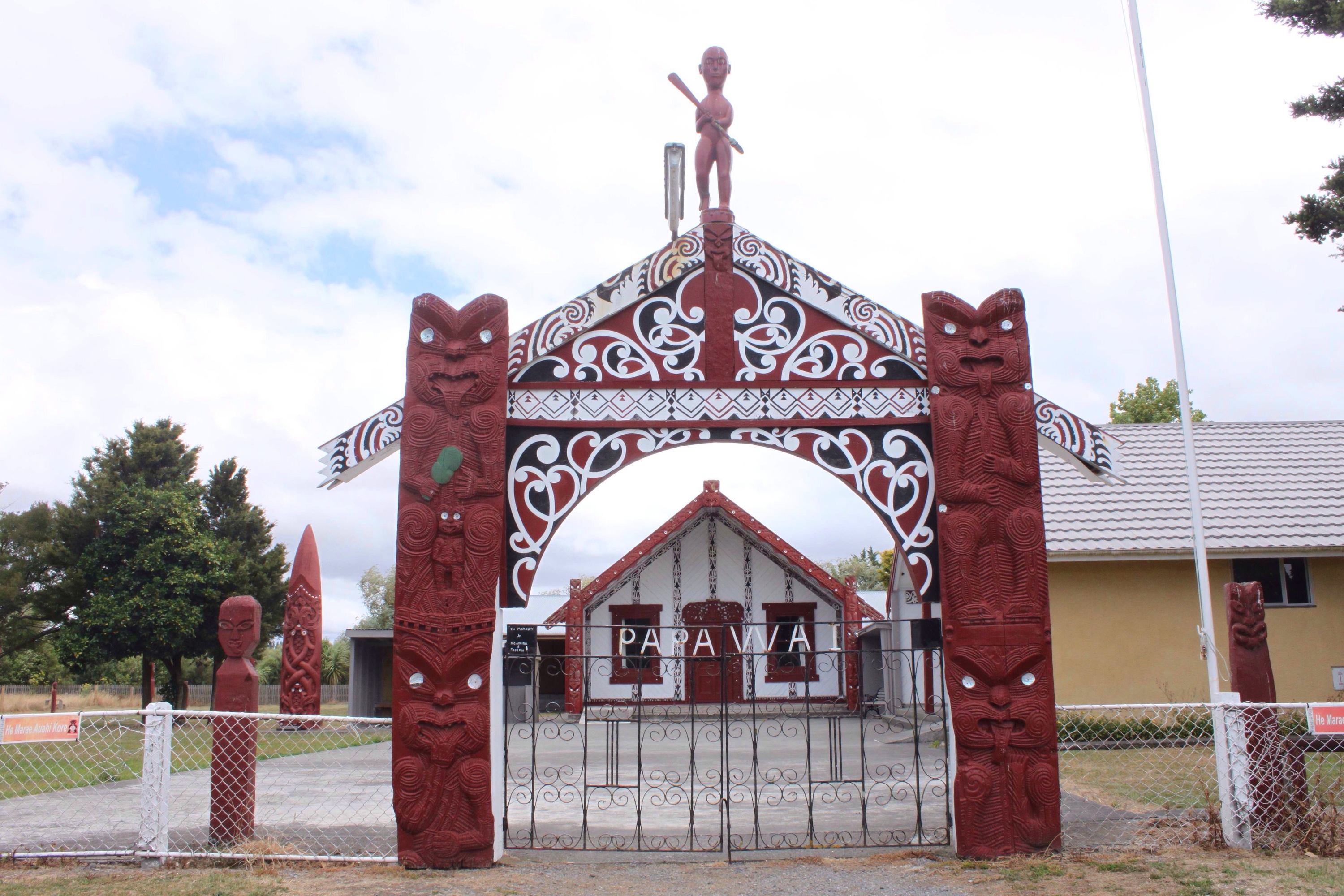 Gestern Abend sind wir am Campingtisch unserer Nachbarn etwas versackt. (Danke nochmal! Der Rote war trotz Kühlung echt lecker.) So startet der Tag später und ruiger. Der heutige Weg führt uns erstmal um den Lake Waiarapa, laut Reisführer ein beliebtes Naherholungsgebiet der Wellingtonians. Von den beschriebenen B&B’s, Motels und Campgrounds am See sehen wir nichts. Da muss wohl ein Druckfehler vorliegen. Die Landschaft ist intensiv landwirtschaftlich genutzt. So müssen wir kurz stoppen, weil uns eine Herde Rinder begegnet. Interessant, die Hunde bei der Arbeit zu beobachten. Dann schauen wir uns noch ein restauriertes Versammlungshaus der Maori in Greytown an.