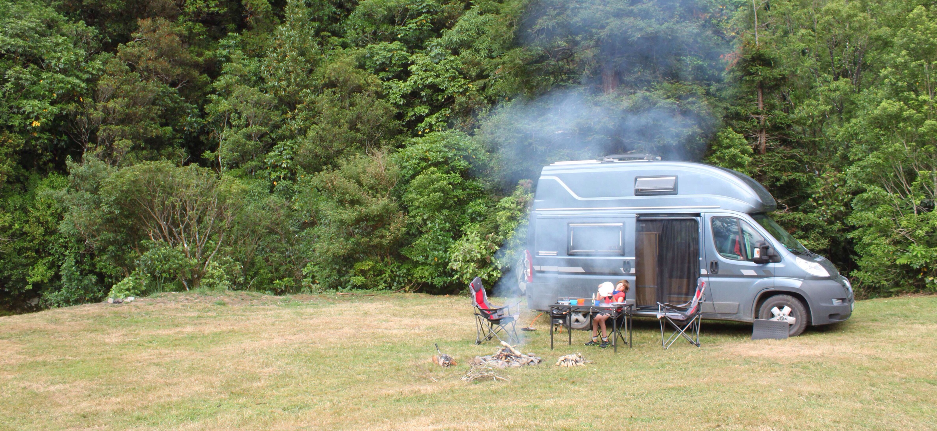 Alles echt nett gemacht und für 15$ Familien-Eintritt auch noch sehr günstig. Dann wieder ein kurzer Abstecher in die Berge und wir übernachten auf dem „überfüllten“ Campground Kiriwhakapapa (der heißt wirklich so und wir sind heute die einzigen Gäste hier). Das gegrillte Steak schmeckt heute mal wieder lecker am Campfire.
