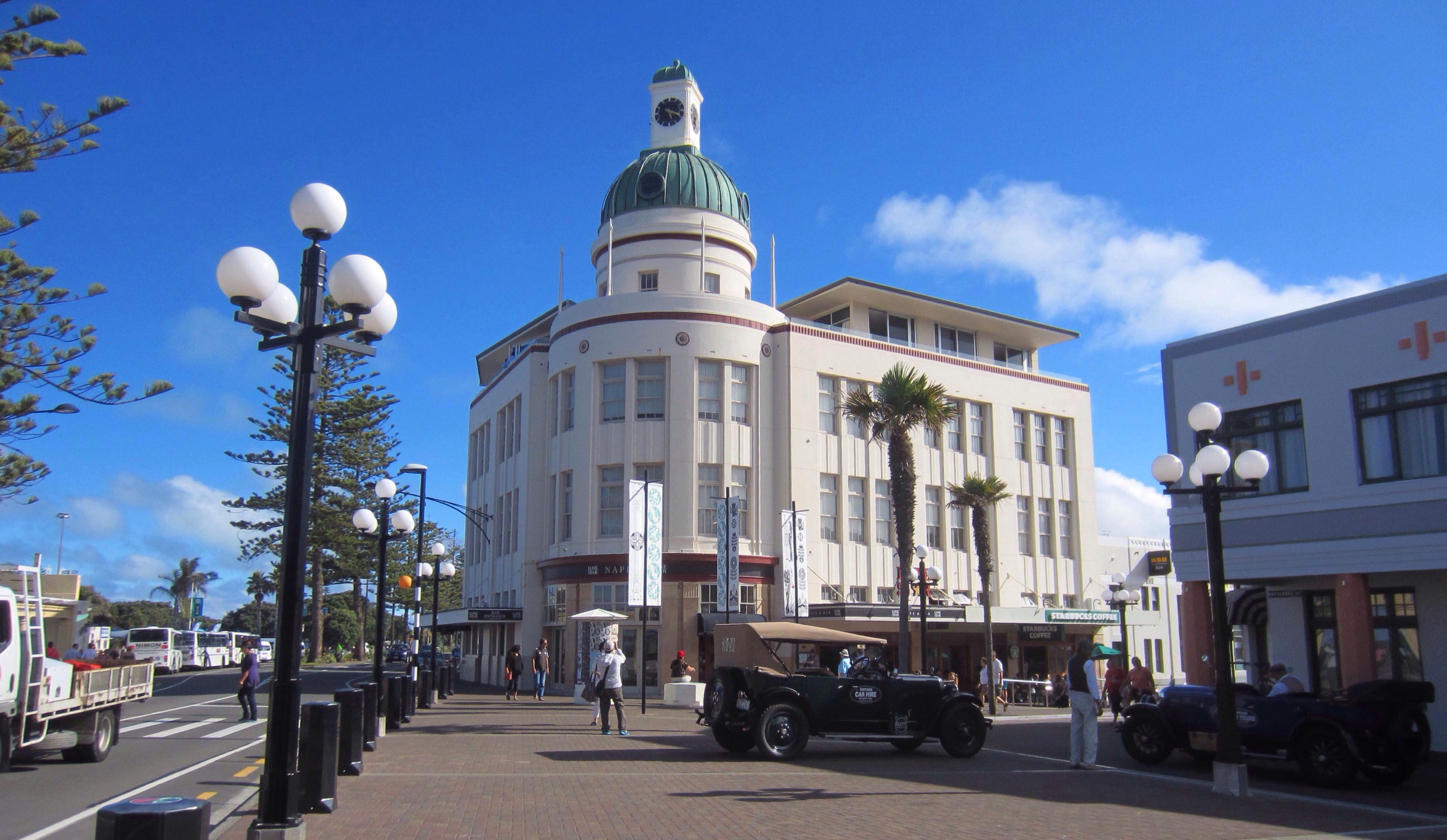Der Tag beginnt unfreundlich mit Regenschauern. Sabine hat die Idee, das schlechte Wetter im Schwimmbad abzuwettern. In Napier finden wir das Aquaric Center und verbringen den Vormittag dort. Dann klart es auf und wir besuchen die Innenstadt.