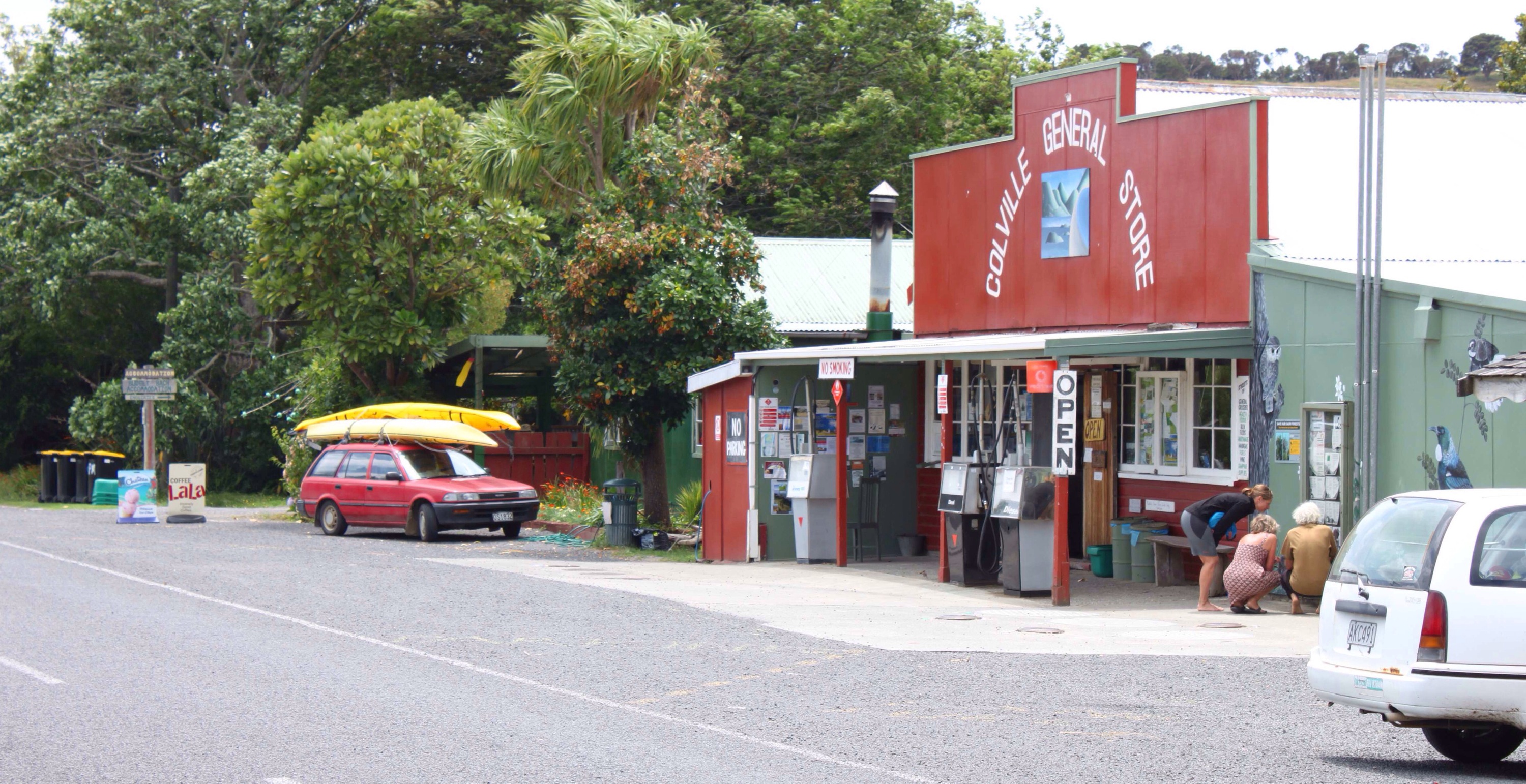 zur White Star Farm. Zuvor halten wir noch mal kurz in Colville am General Store, da gibt es vom Liter Milch über Wollläufer bis zur Tankfüllung Diesel einfach alles was man zum Leben in dieser Einsamkeit braucht. Natürlich gehört auch ein freundlicher Schnack dazu.
