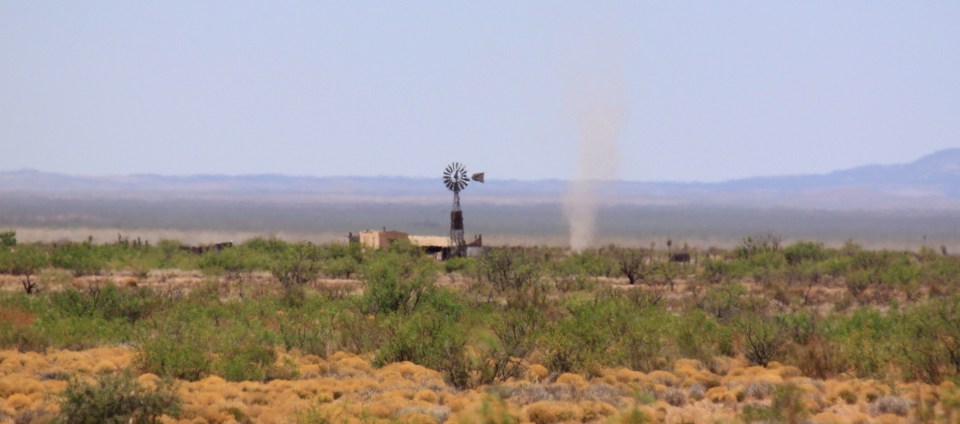 Auf der Weiterfahrt durch die Prairie „begleitet“ uns starker Wind und immer wieder kleine Wirbel.
