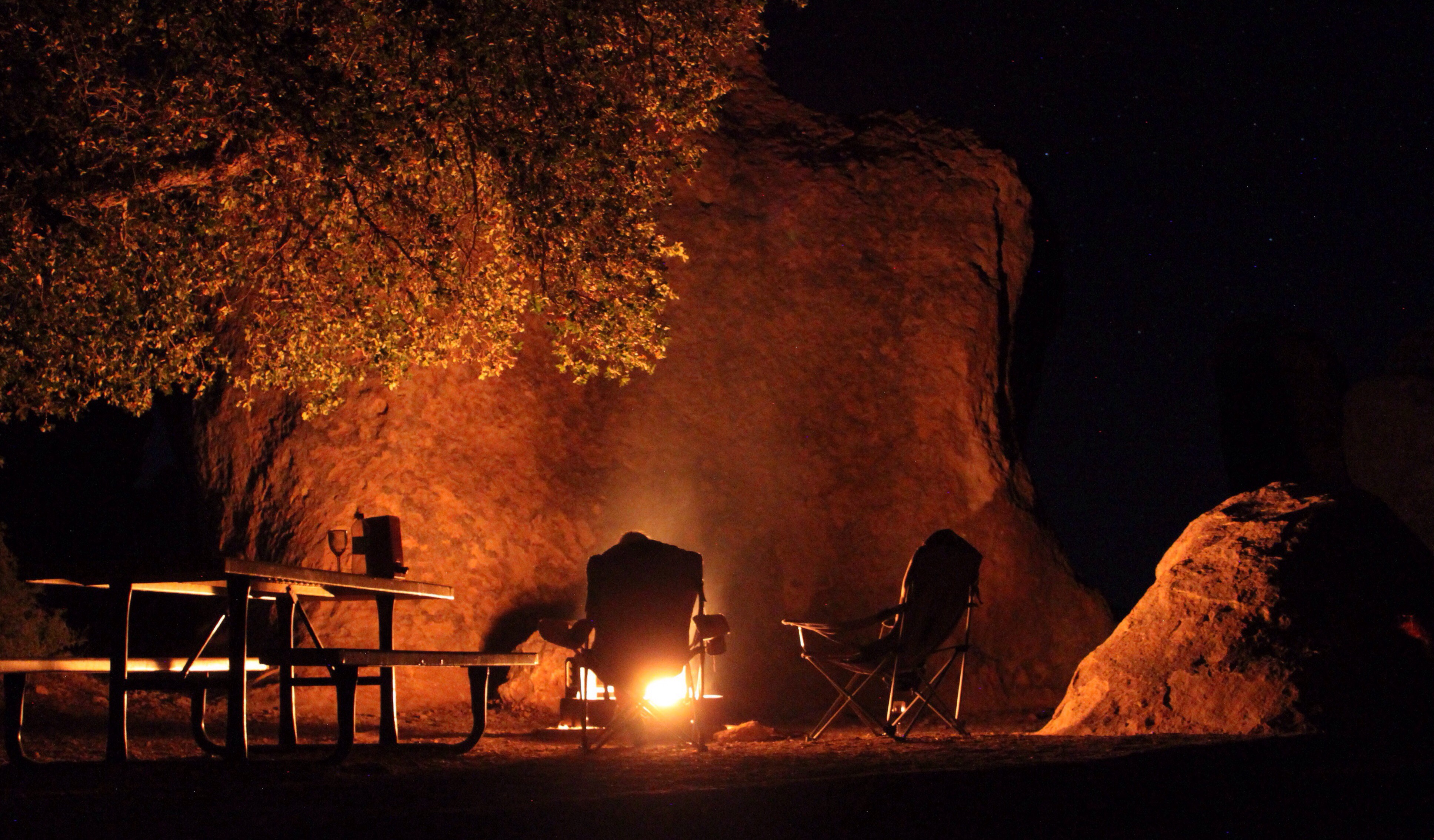 Die Felswände reflektieren das Lagerfeuer, die Sterne funkeln am Himmel und in der Ferne heult vielleicht ein Coyote (sieht man auf dem Foto nicht) und wir sind, nachdem wir am Vormittag den Rio Grande überquert haben, im „Wilden Westen“ angekommen.