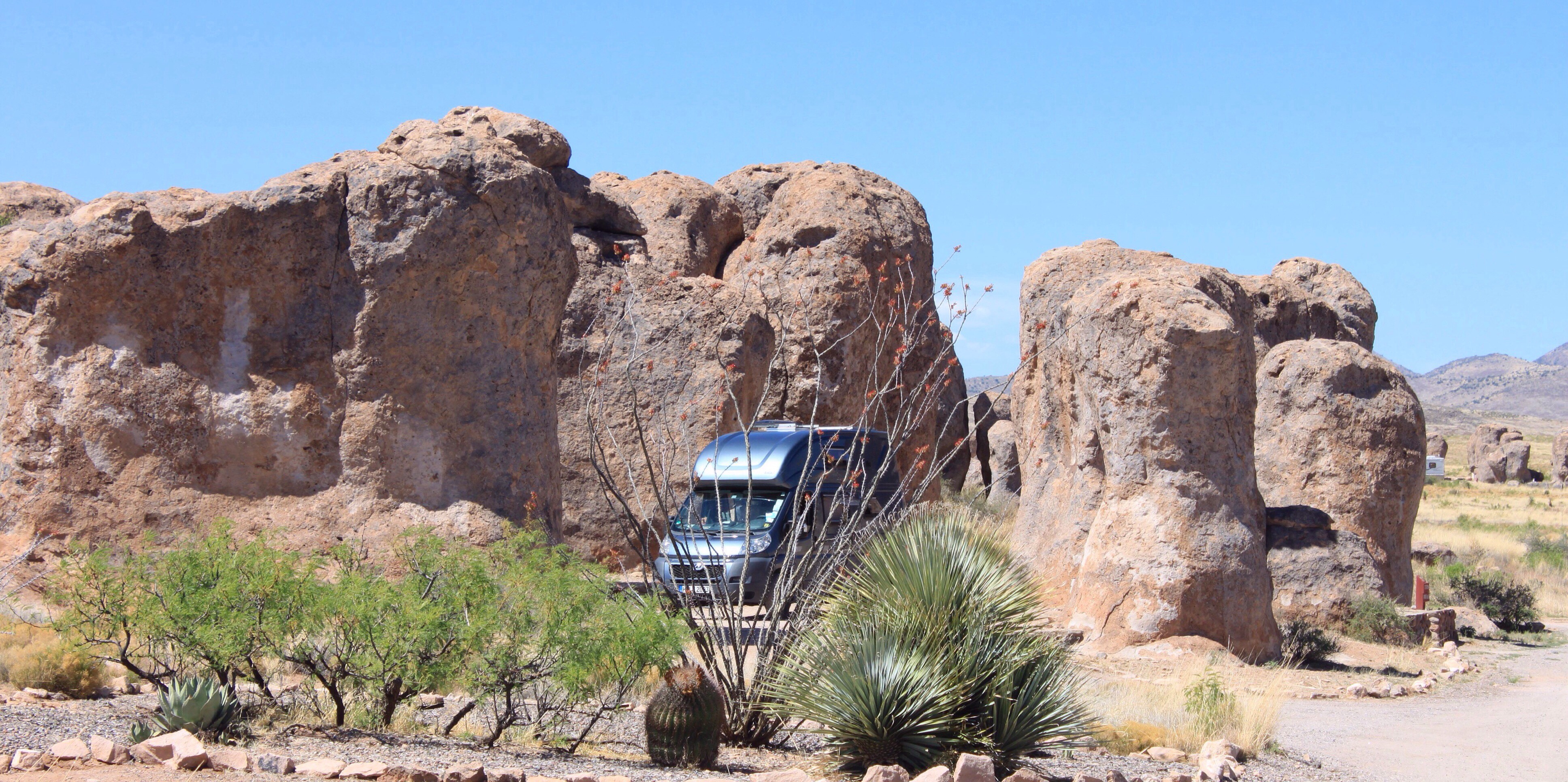 Die Mittagspause verbringen wir im „City of Rocks“ State Park. Die Picknickplätze sind hier direkt zwischen den Felsen eingebettet. (Ein Traum)