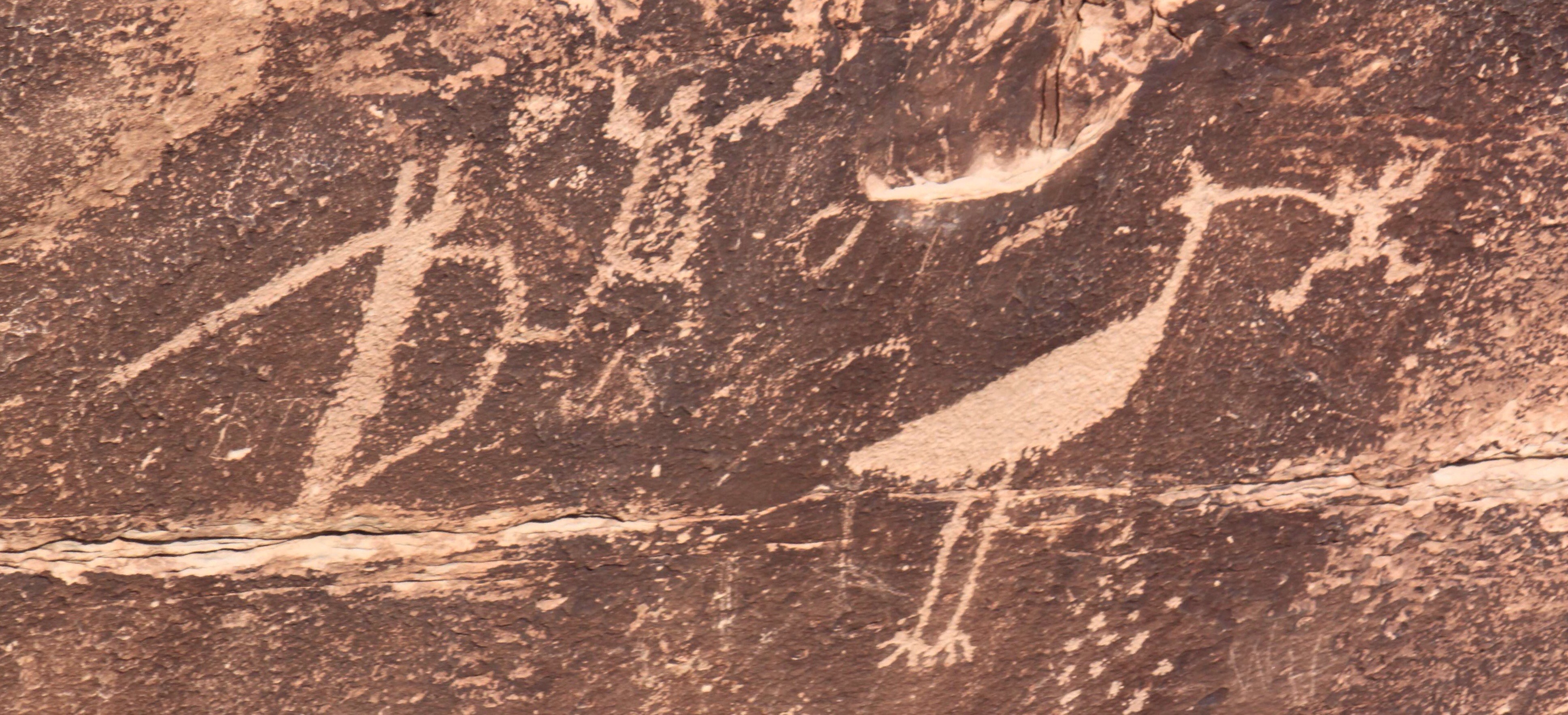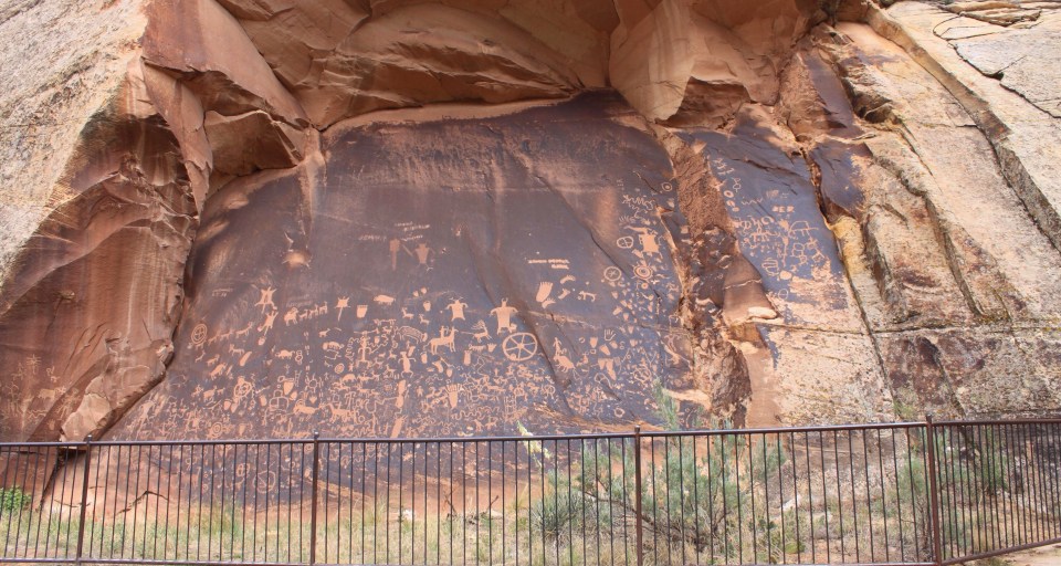 Auf dem Weg in den Park halten wir noch am Newspaper Rock. Alte Aufzeichnungen der First Nation.